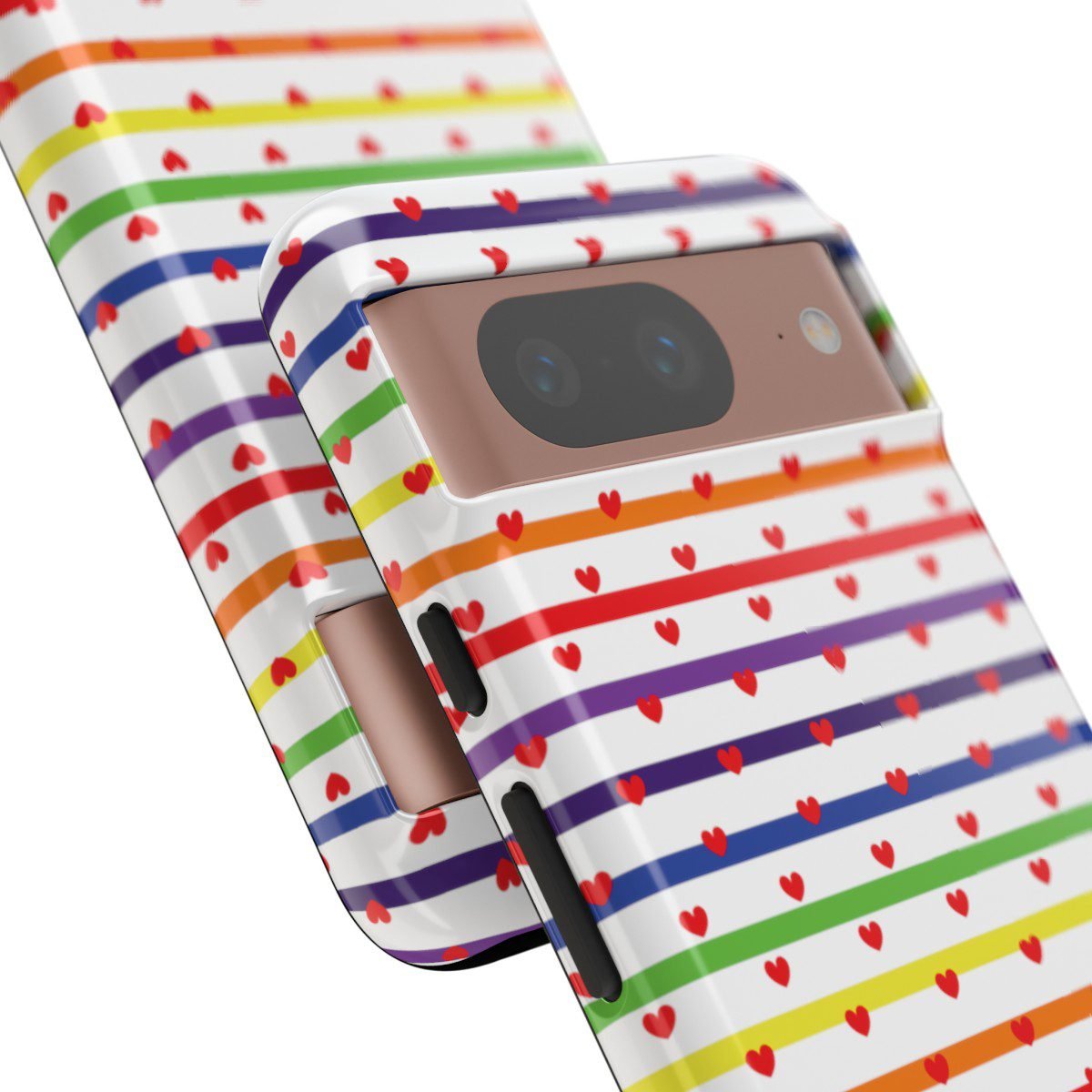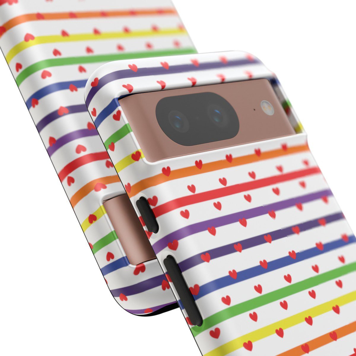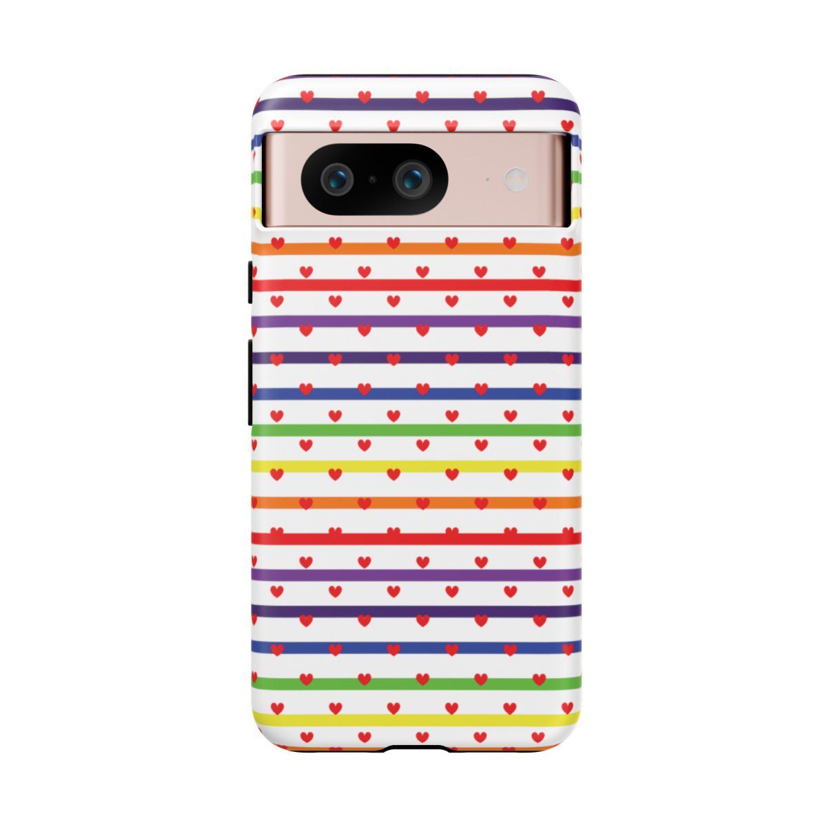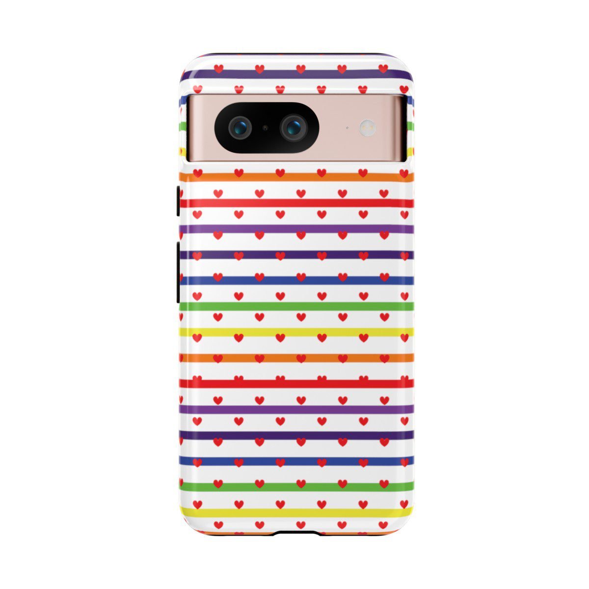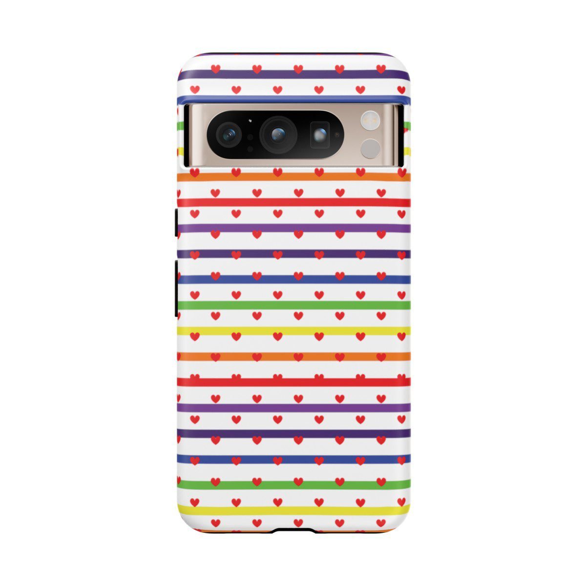 Rainbow and White Stripes With Hearts – Google Pixel 5 6 7 8 – Cell Phone – Tough Cases.