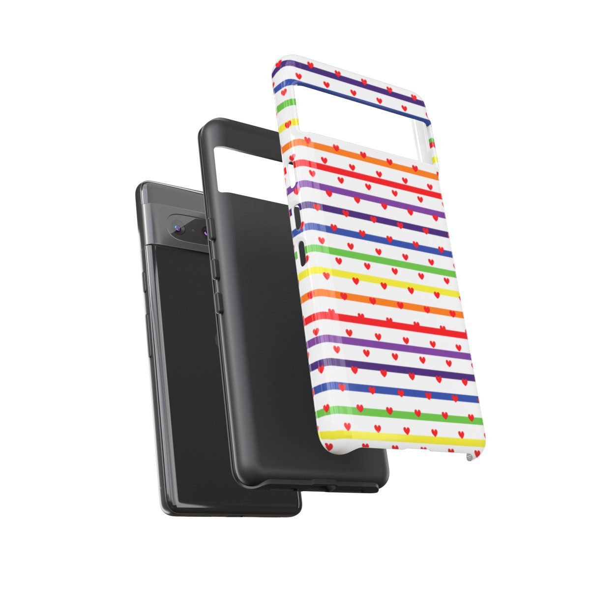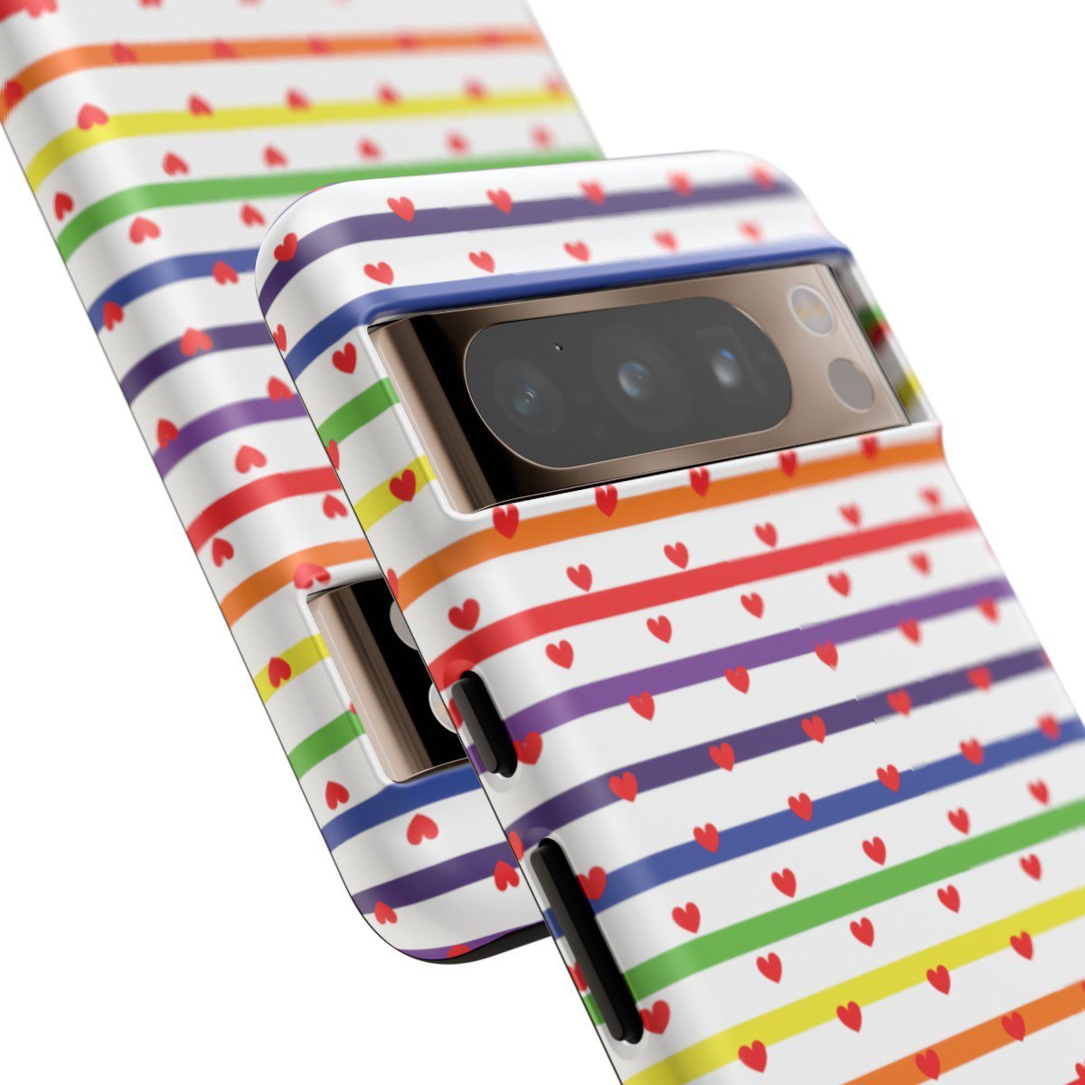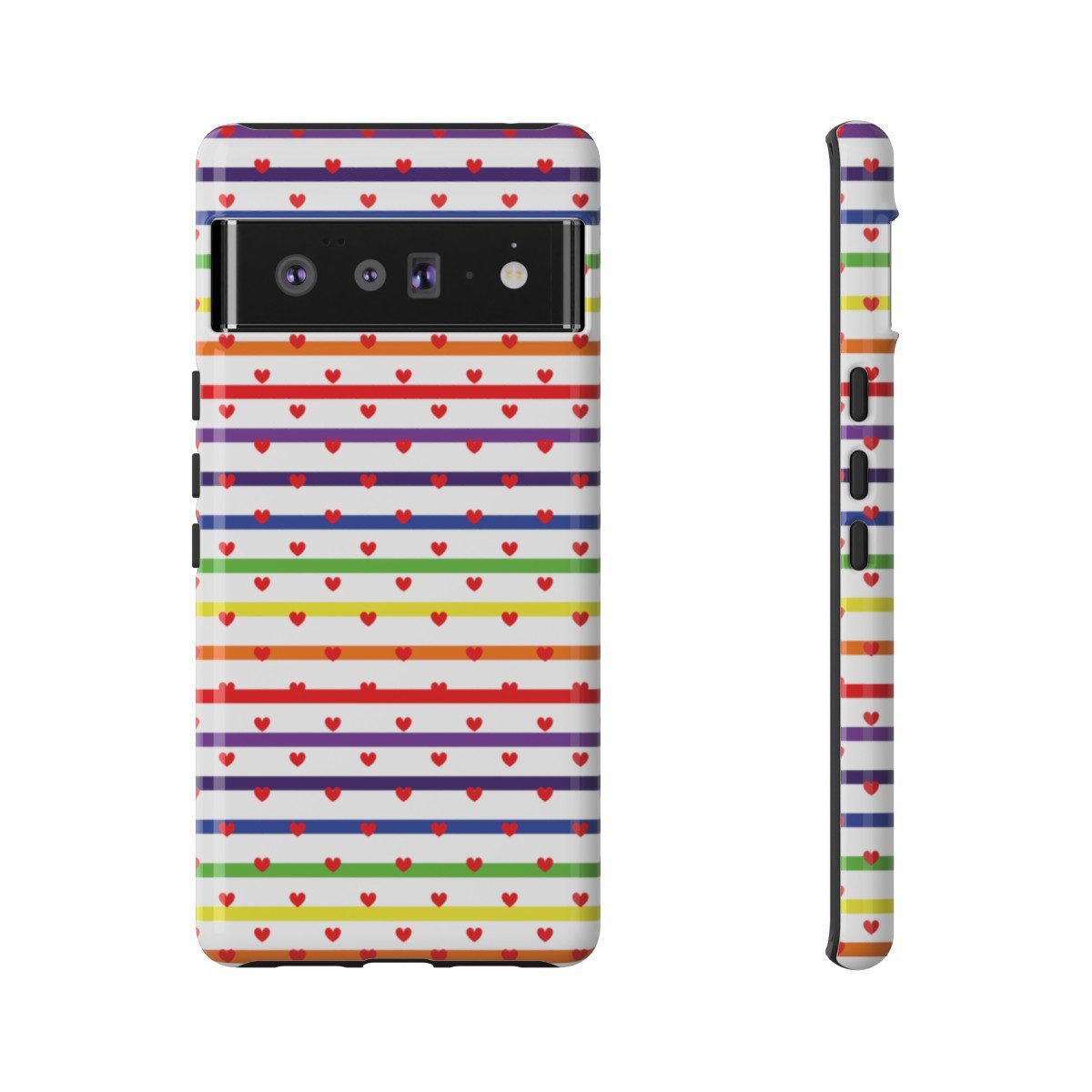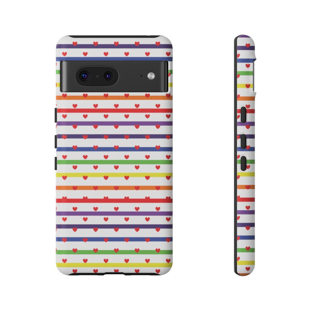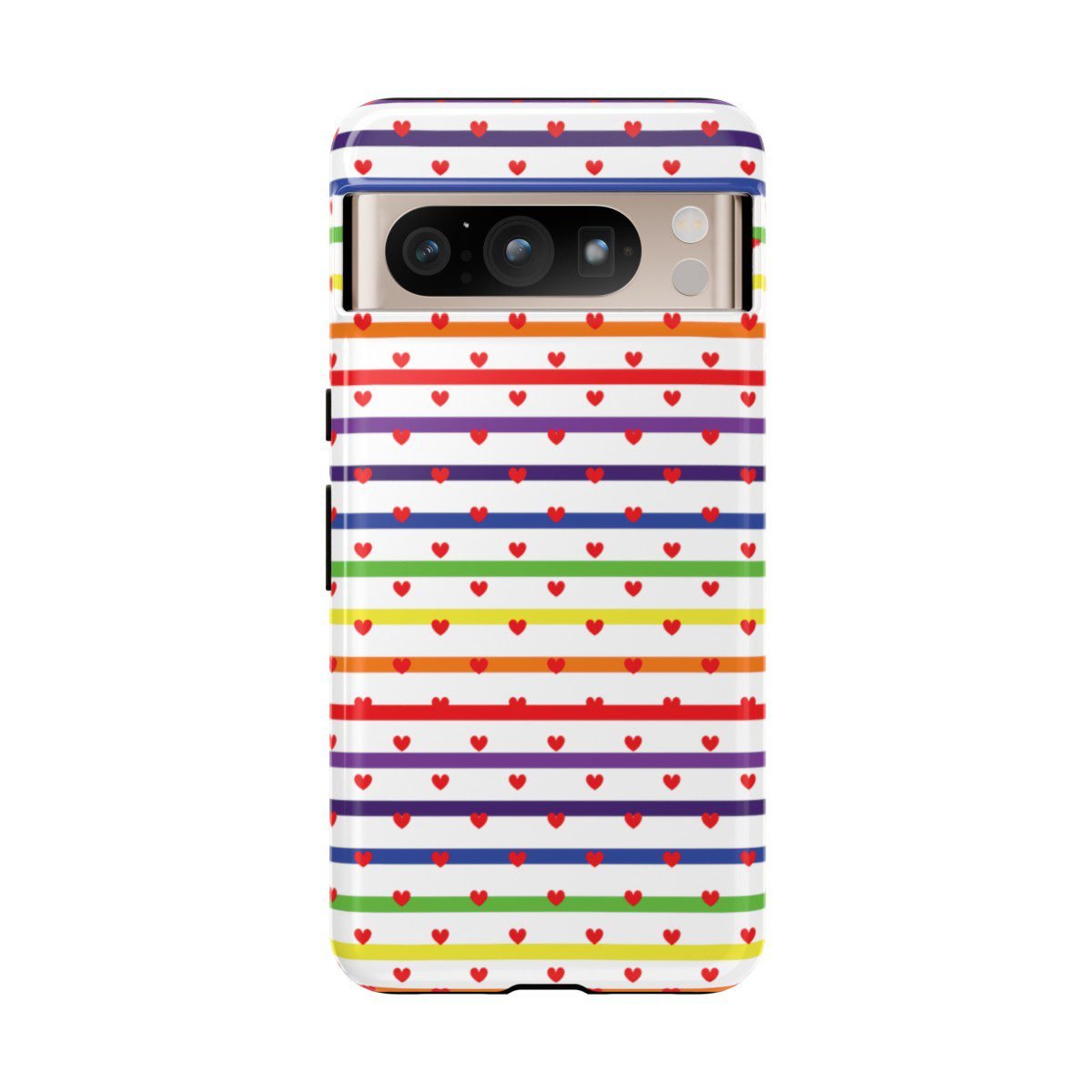 Rainbow and White Stripes With Hearts – Google Pixel 5 6 7 8 – Cell Phone – Tough Cases.