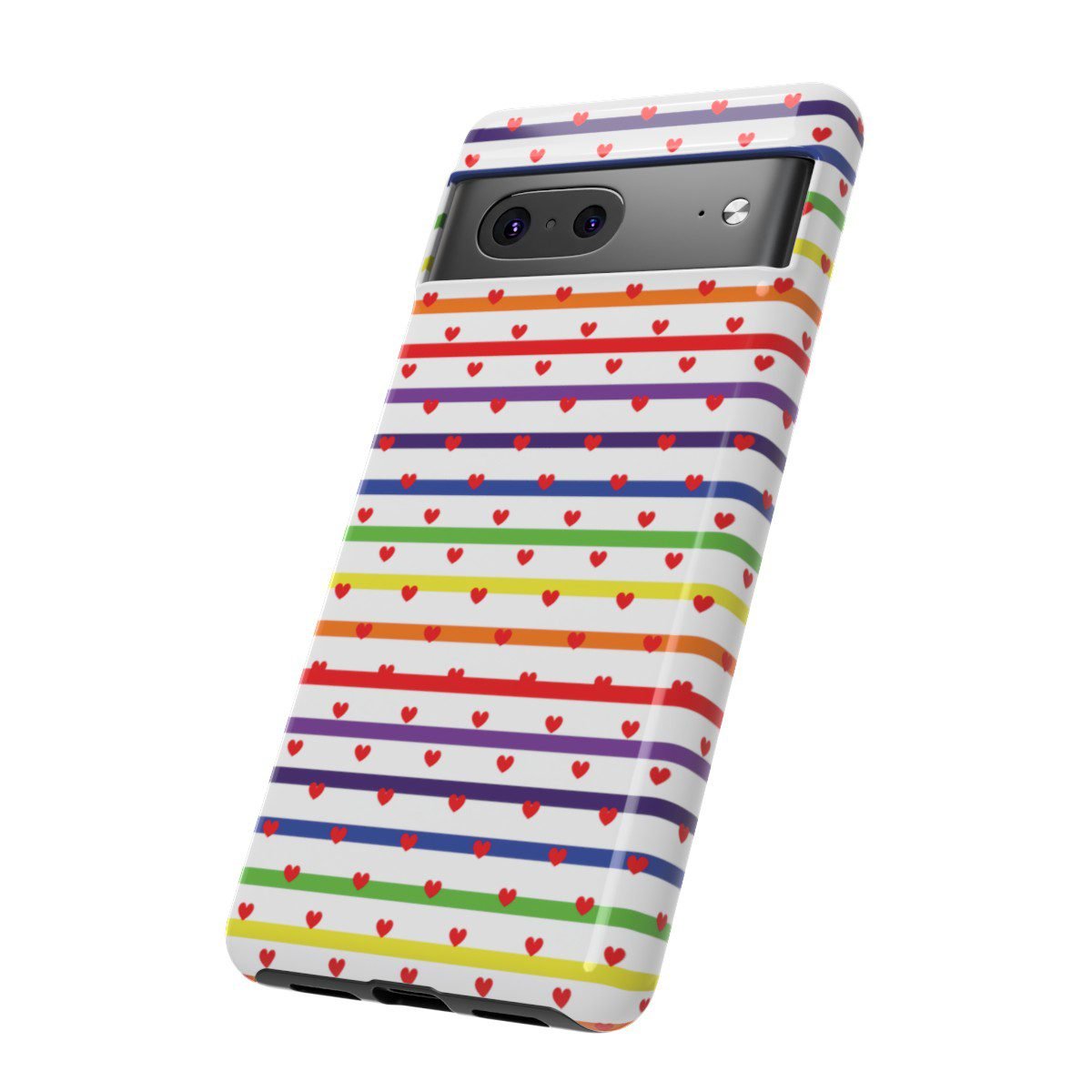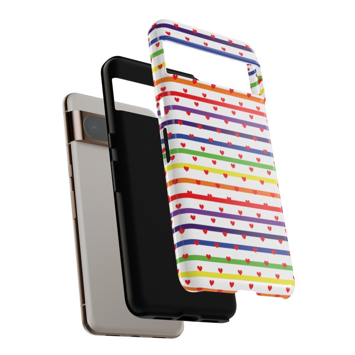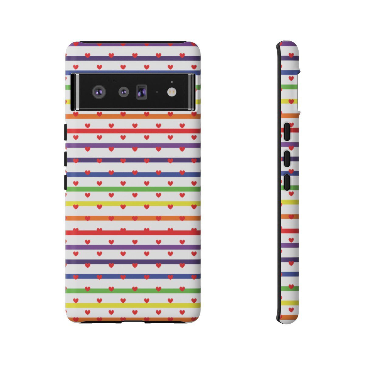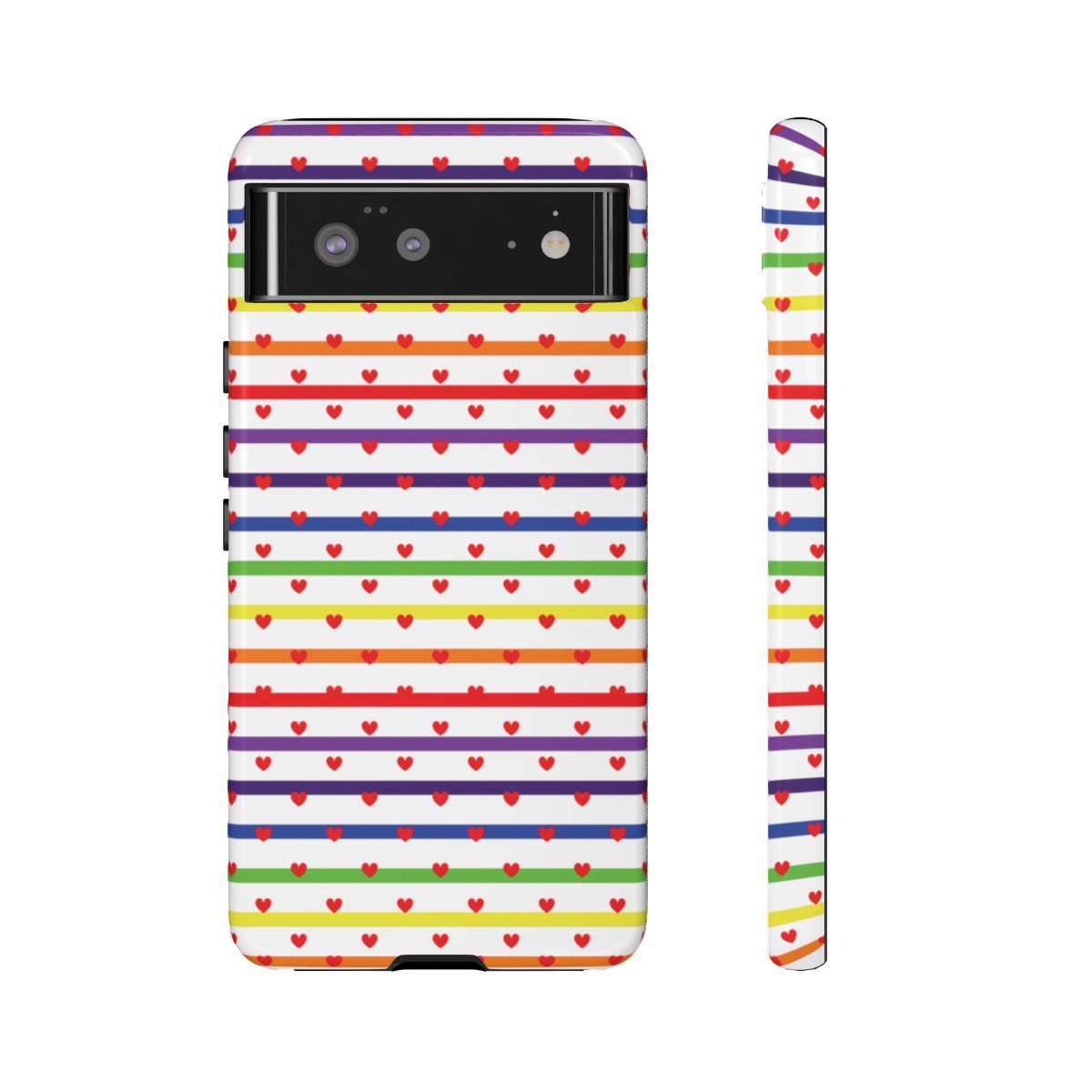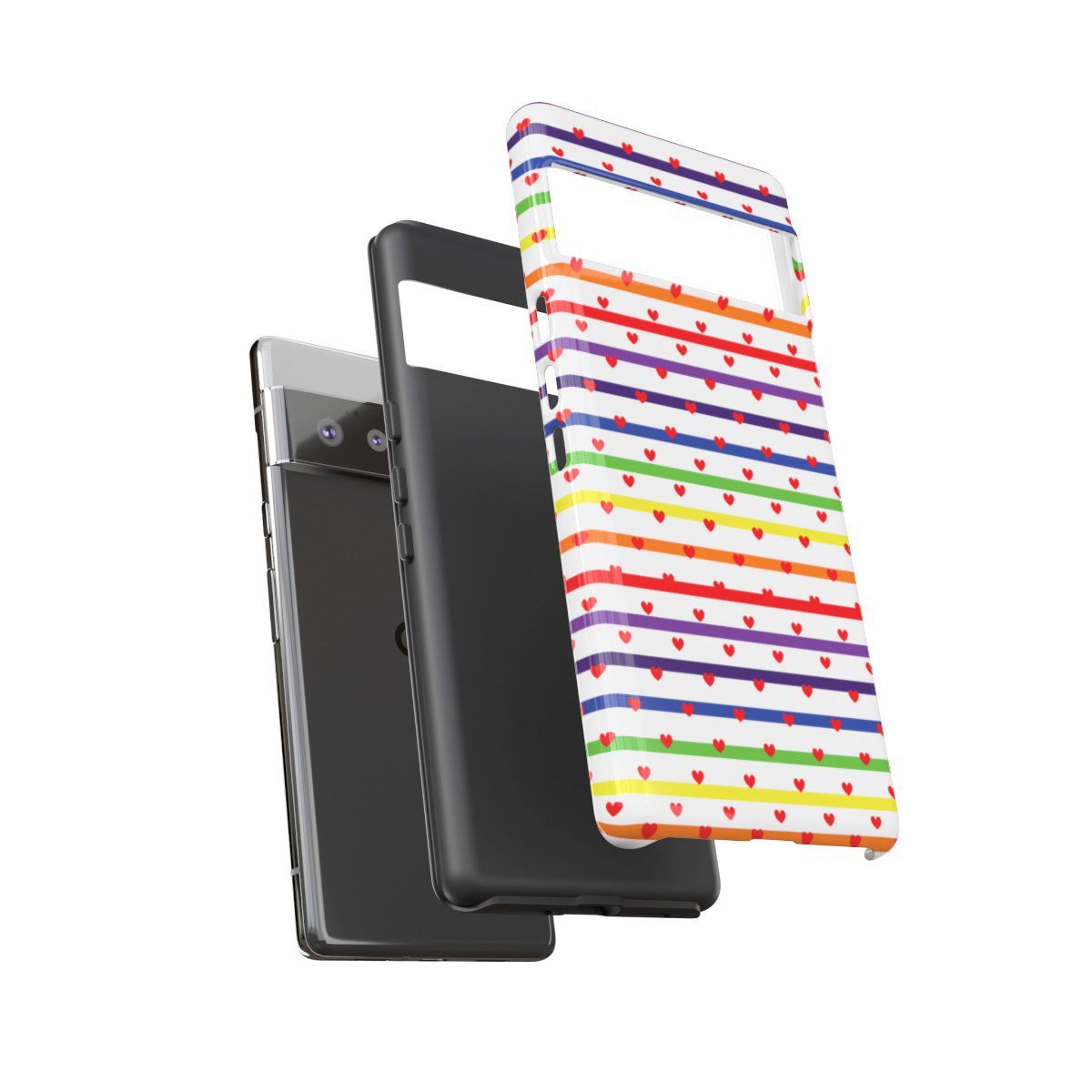 Rainbow and White Stripes With Hearts – Google Pixel 5 6 7 8 – Cell Phone – Tough Cases.