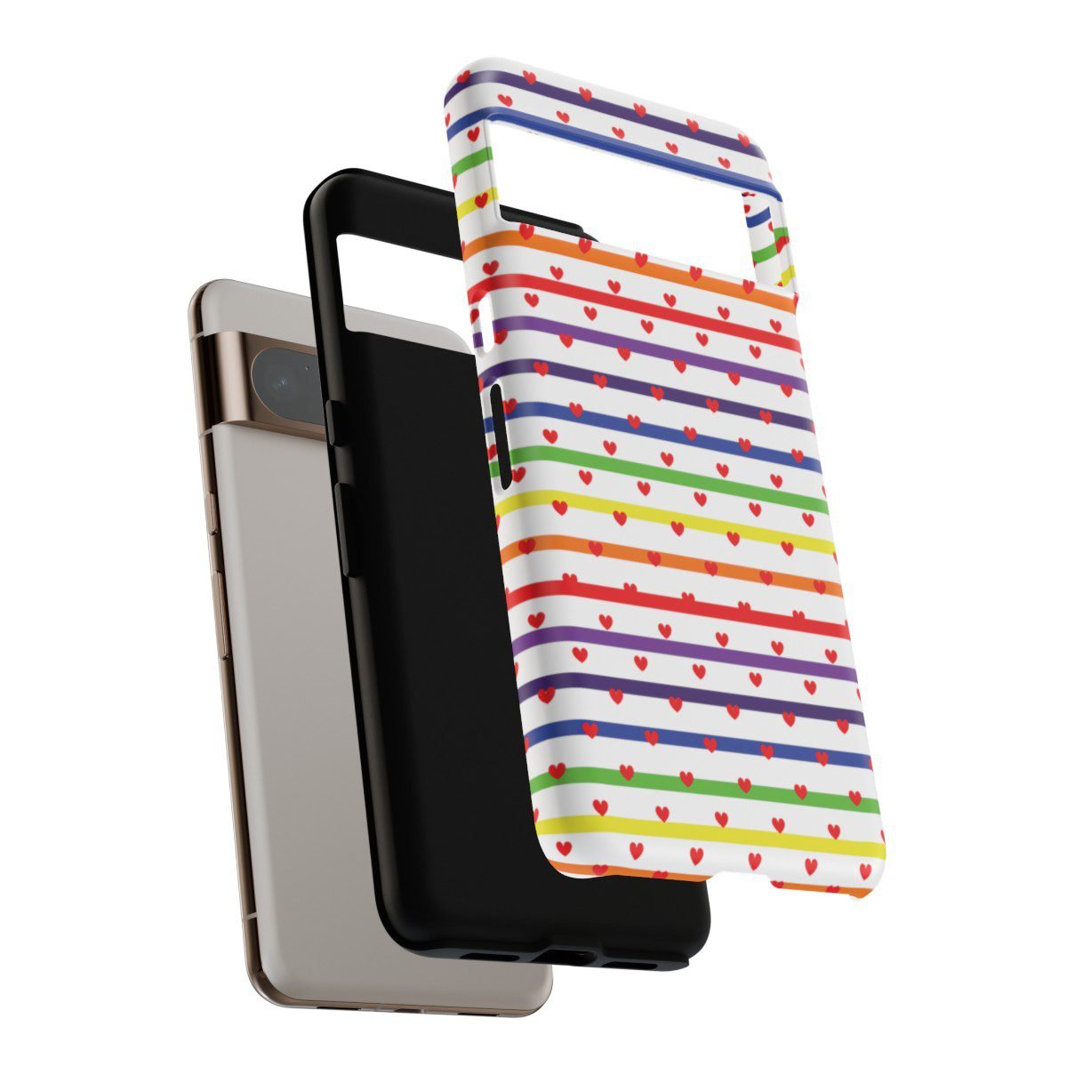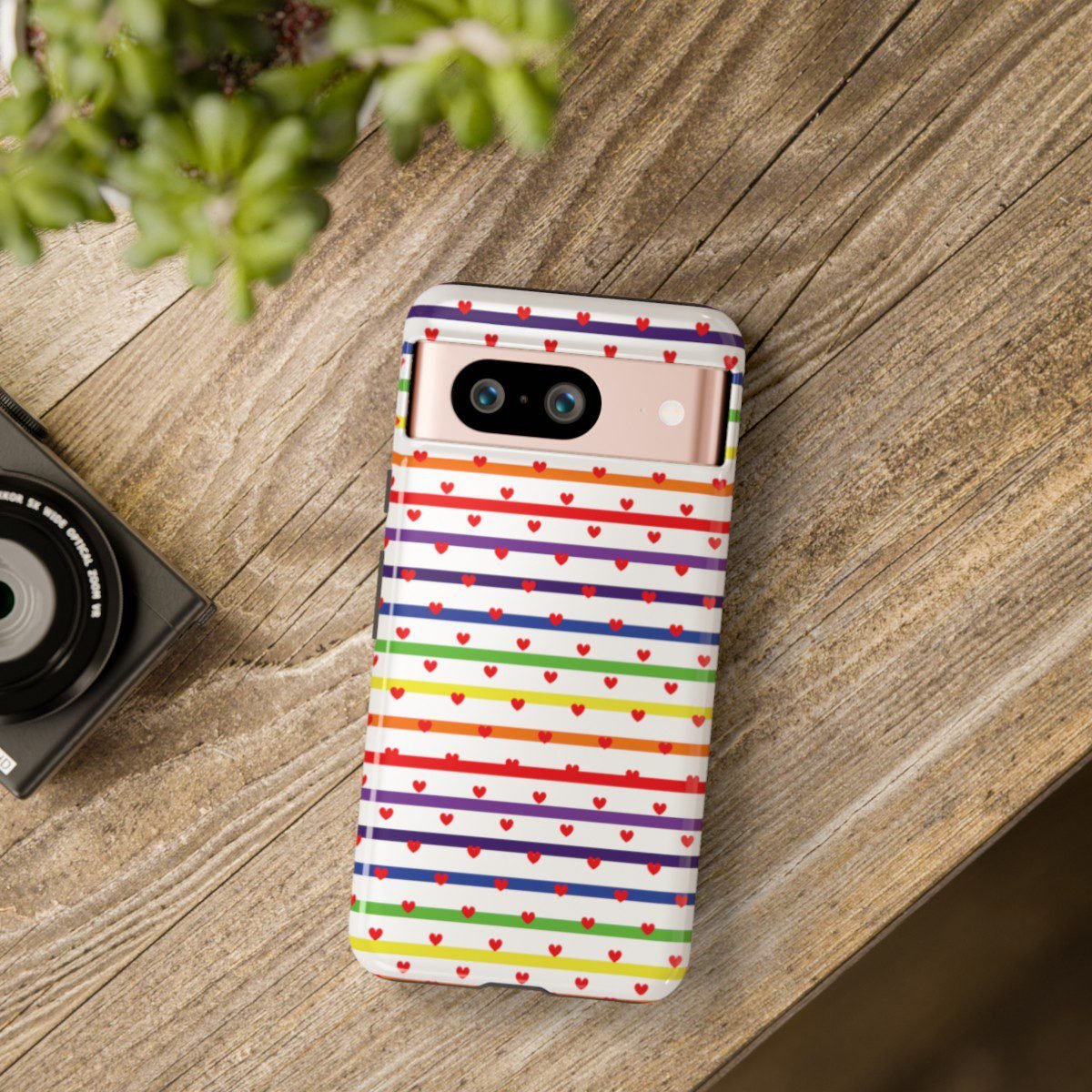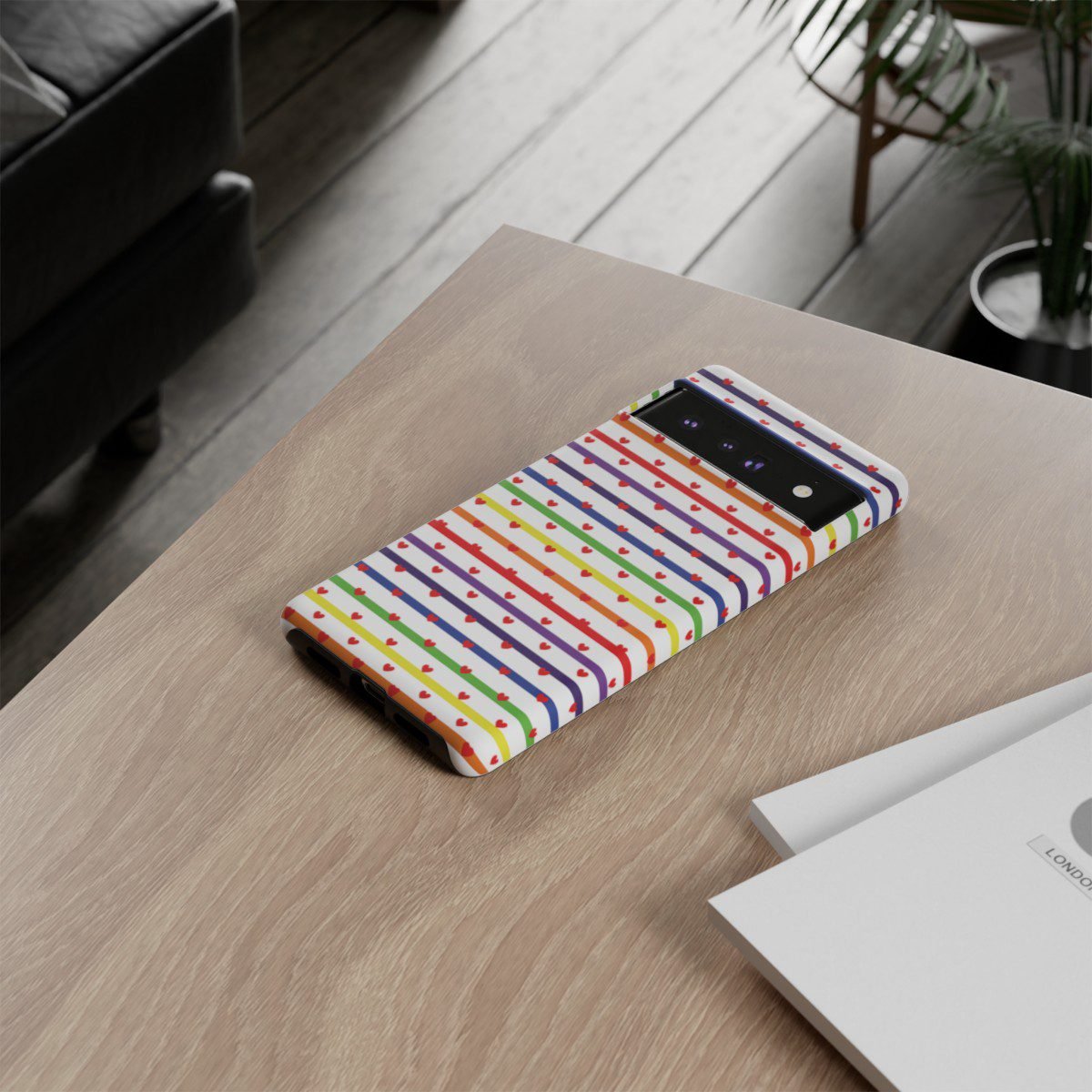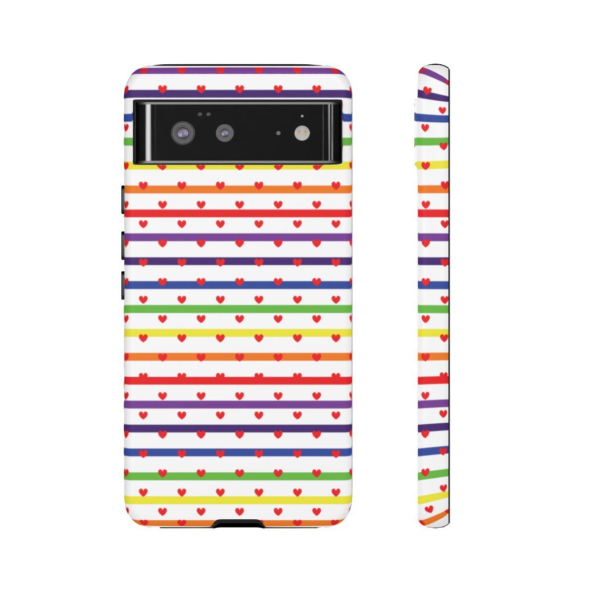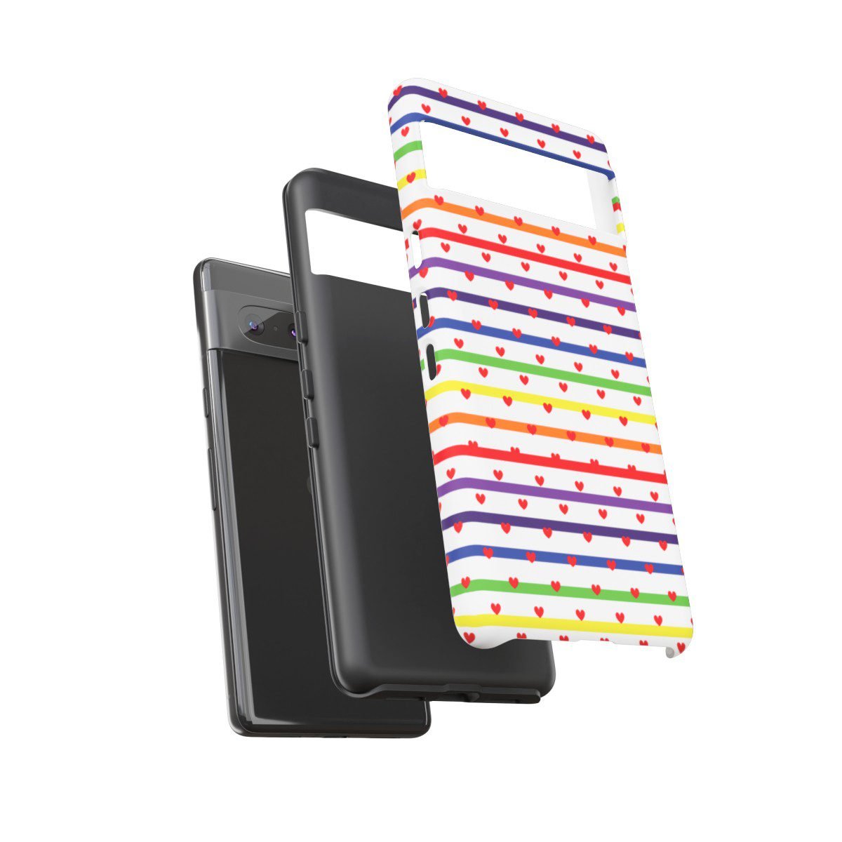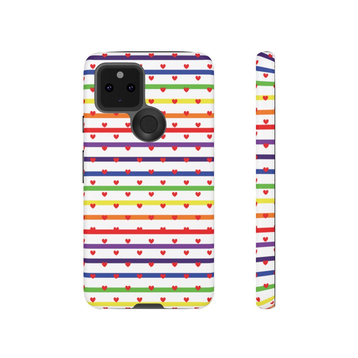 Rainbow and White Stripes With Hearts – Google Pixel 5 6 7 8 – Cell Phone – Tough Cases.