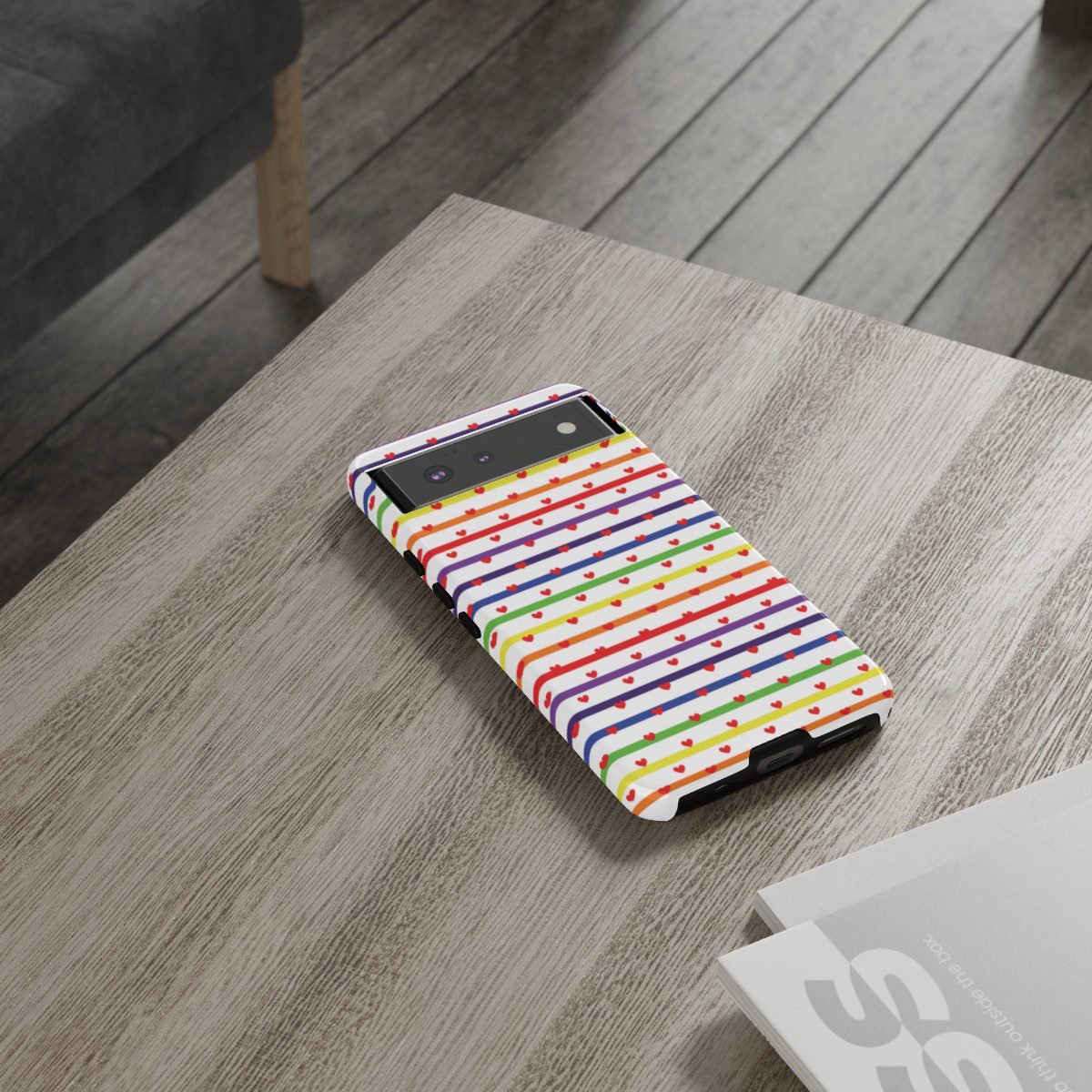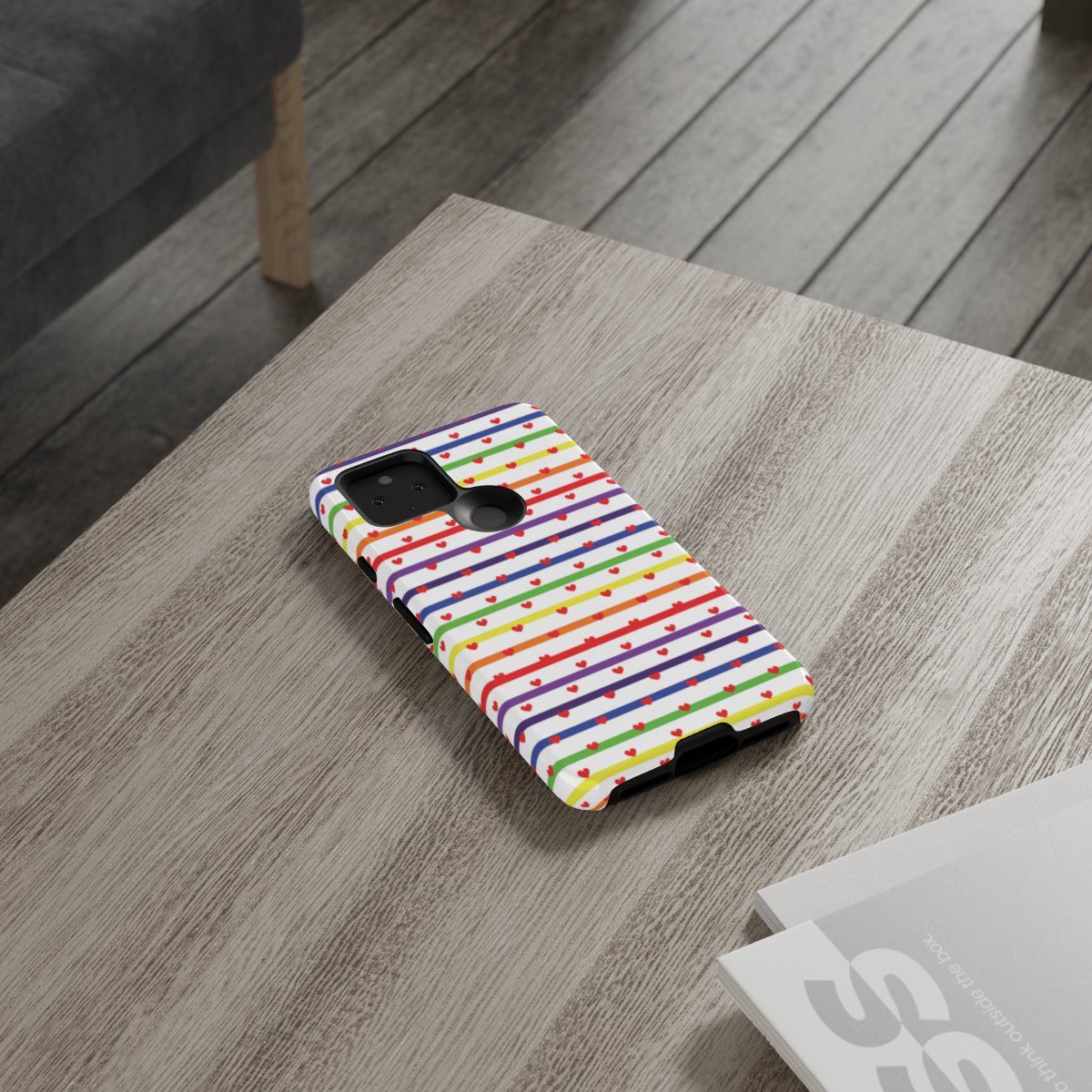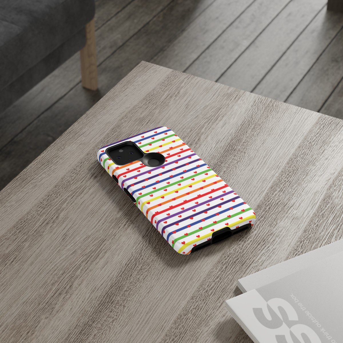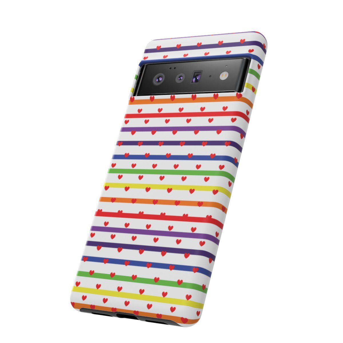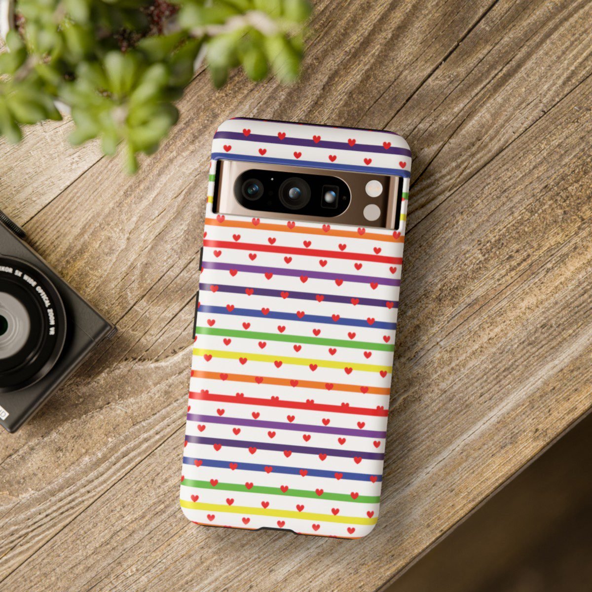 Rainbow and White Stripes With Hearts – Google Pixel 5 6 7 8 – Cell Phone – Tough Cases.