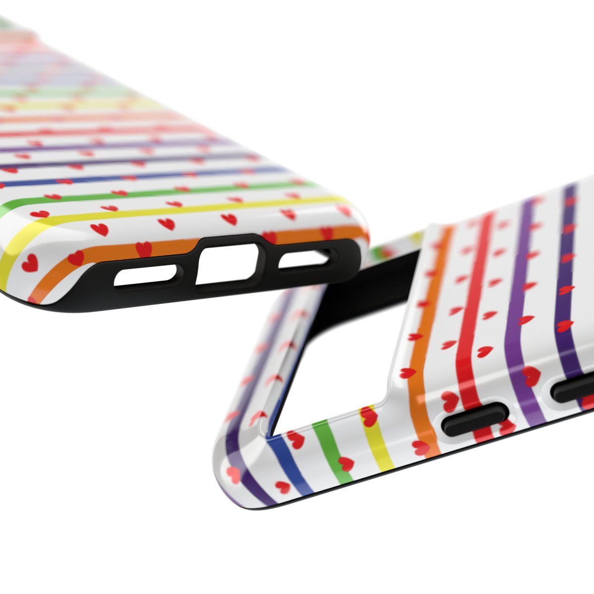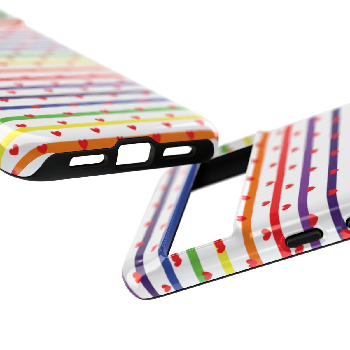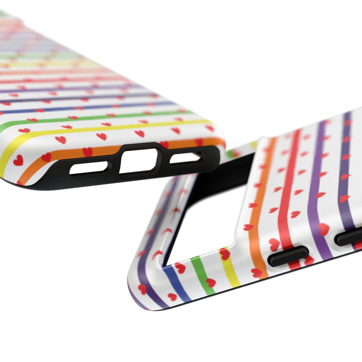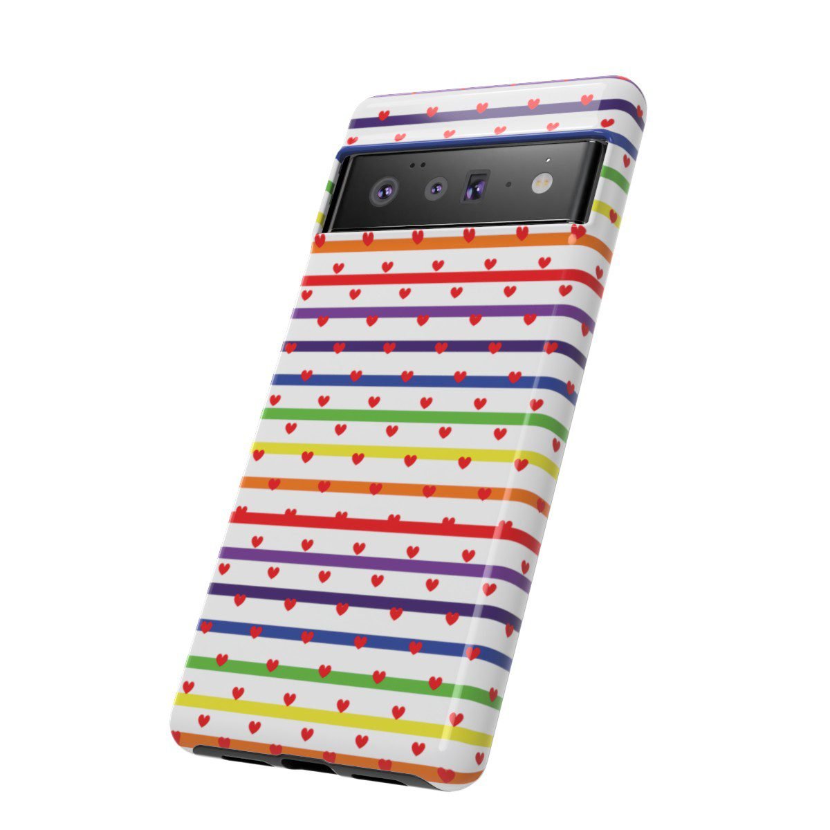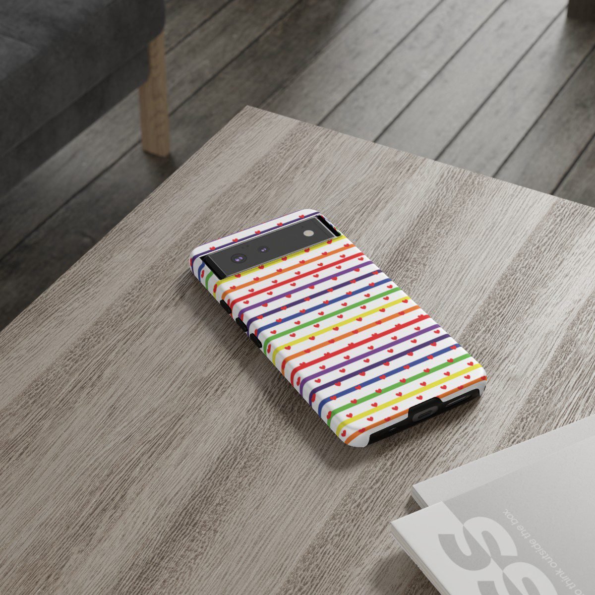 Rainbow and White Stripes With Hearts – Google Pixel 5 6 7 8 – Cell Phone – Tough Cases.