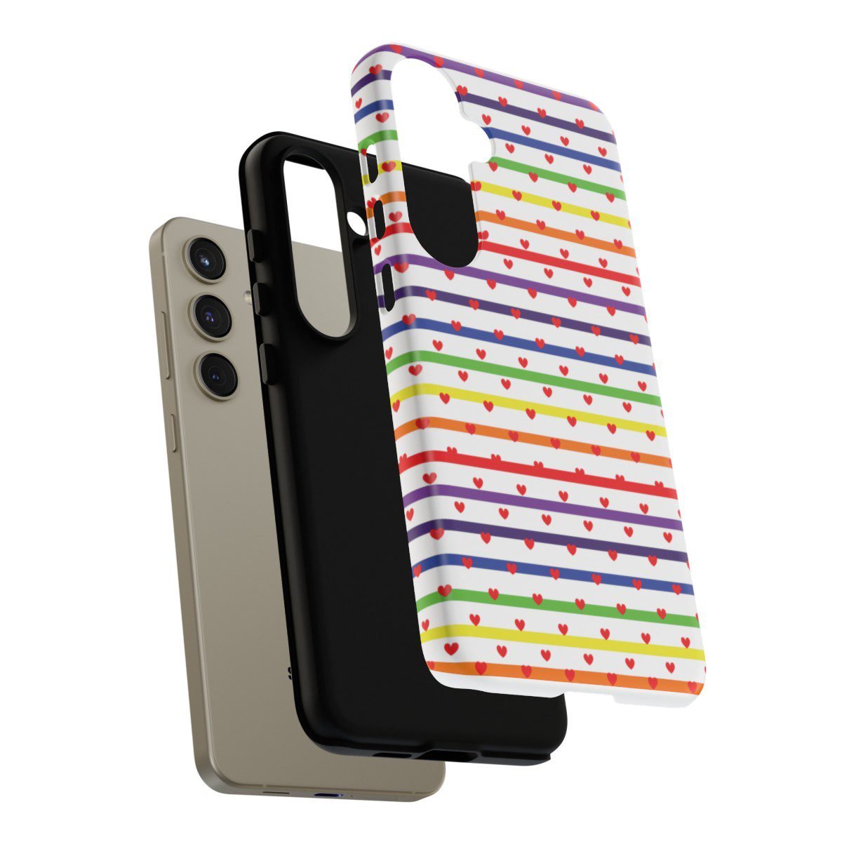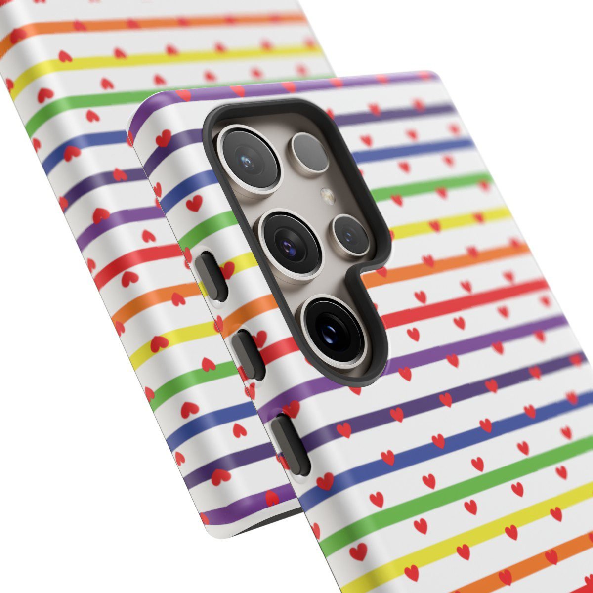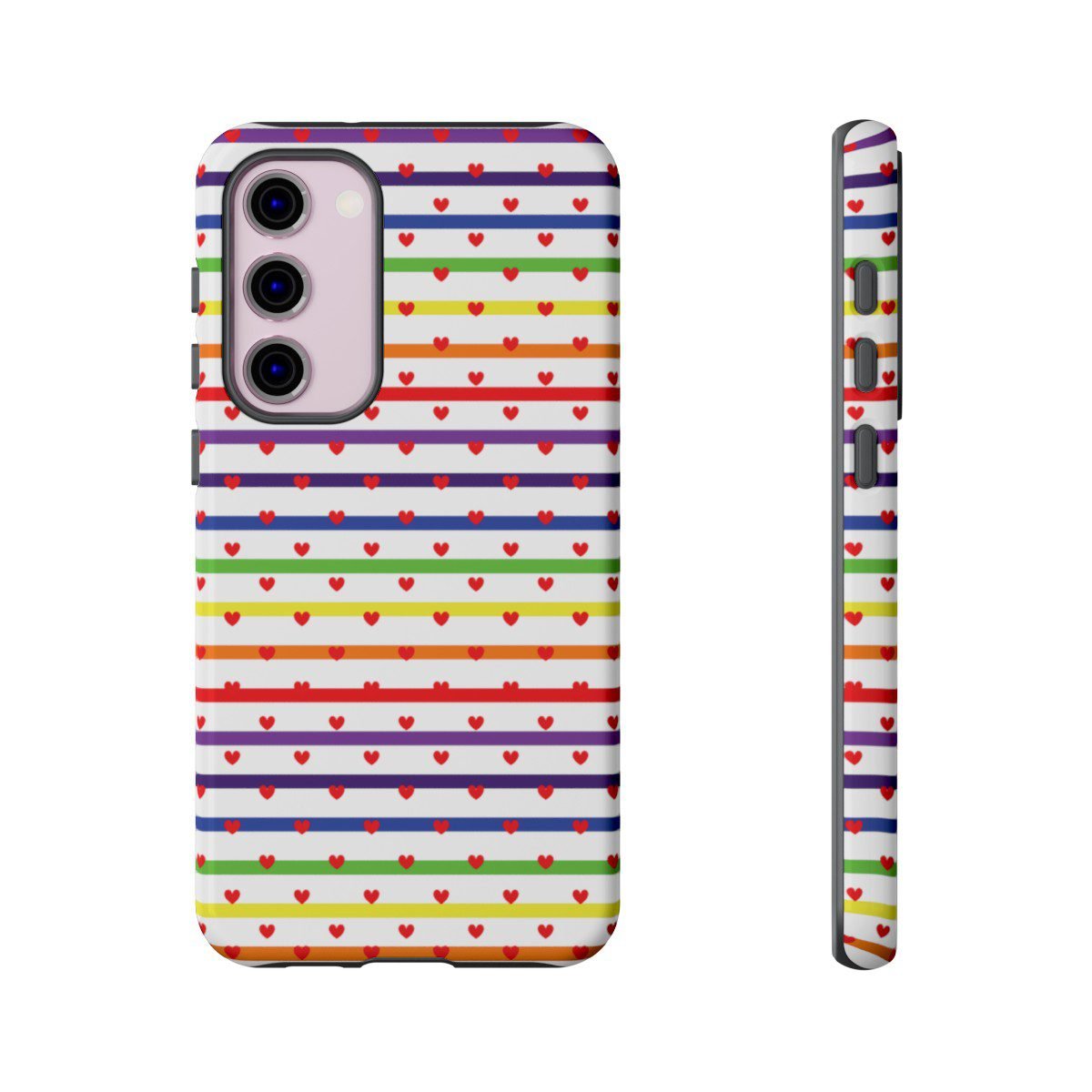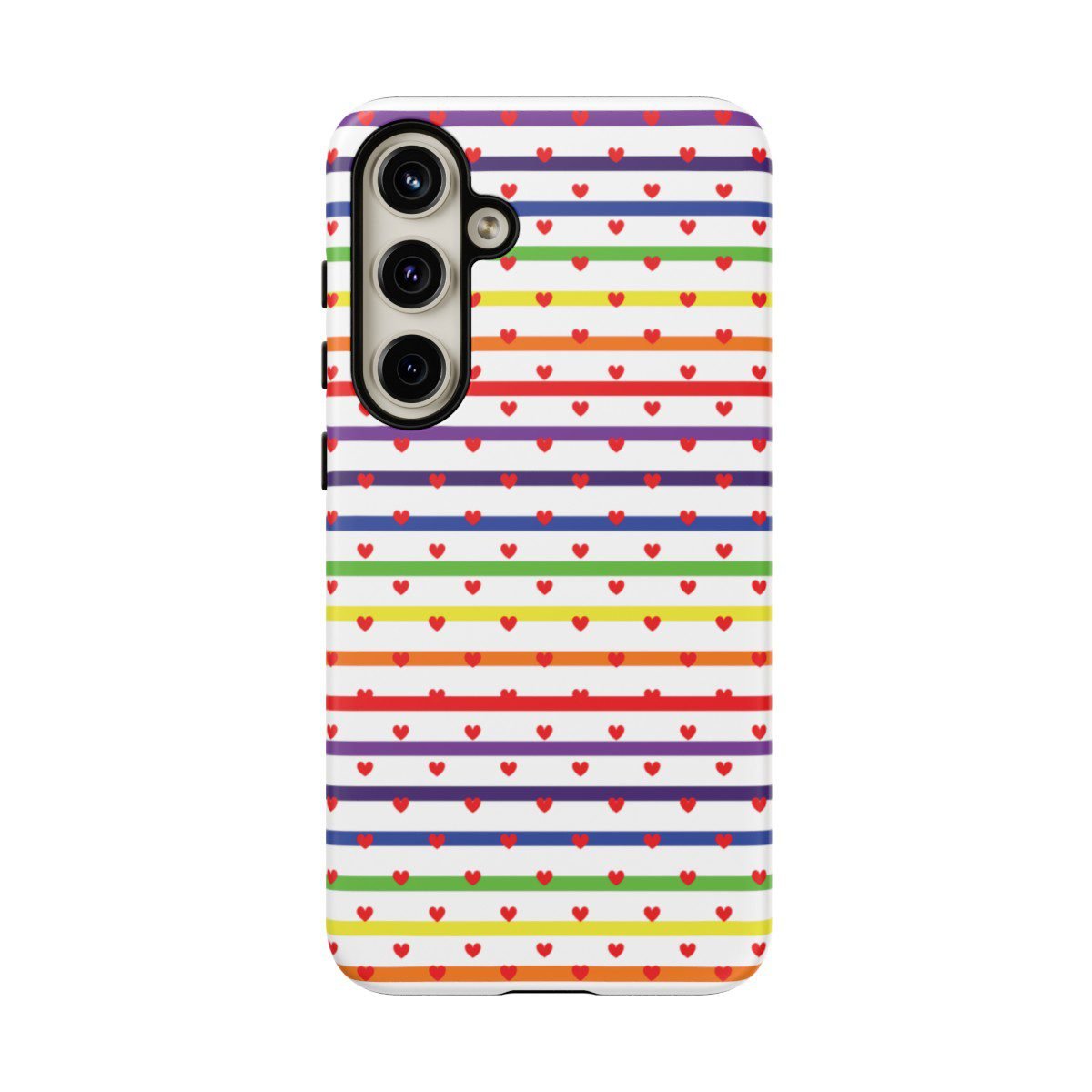 Rainbow and White Stripes With Hearts – Samsung Galaxy S22 S23 S24 – Cell Phone – Tough Cases.