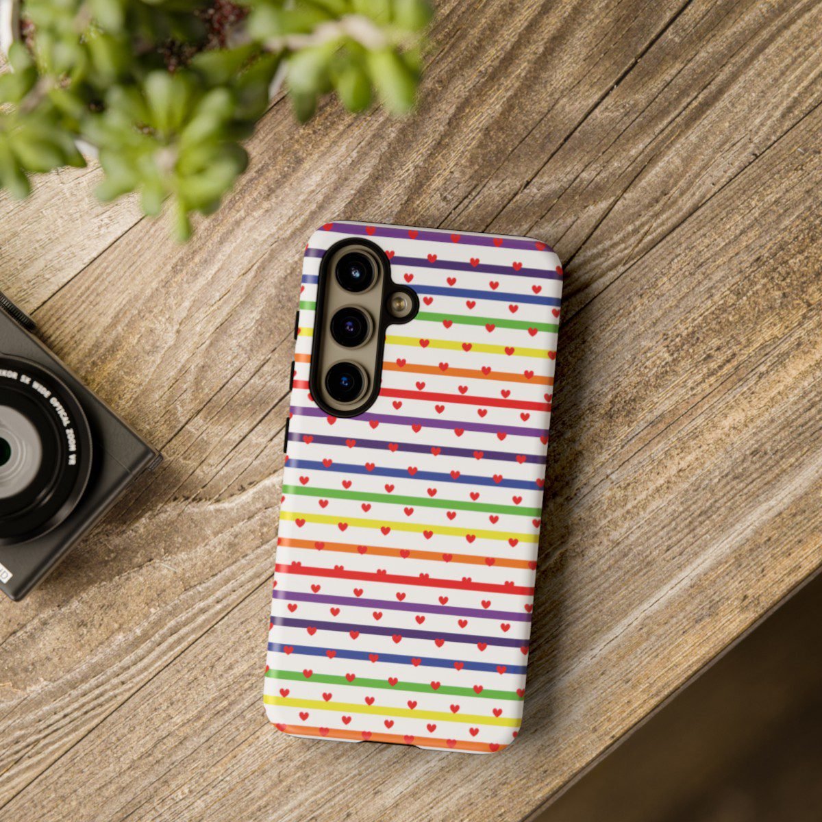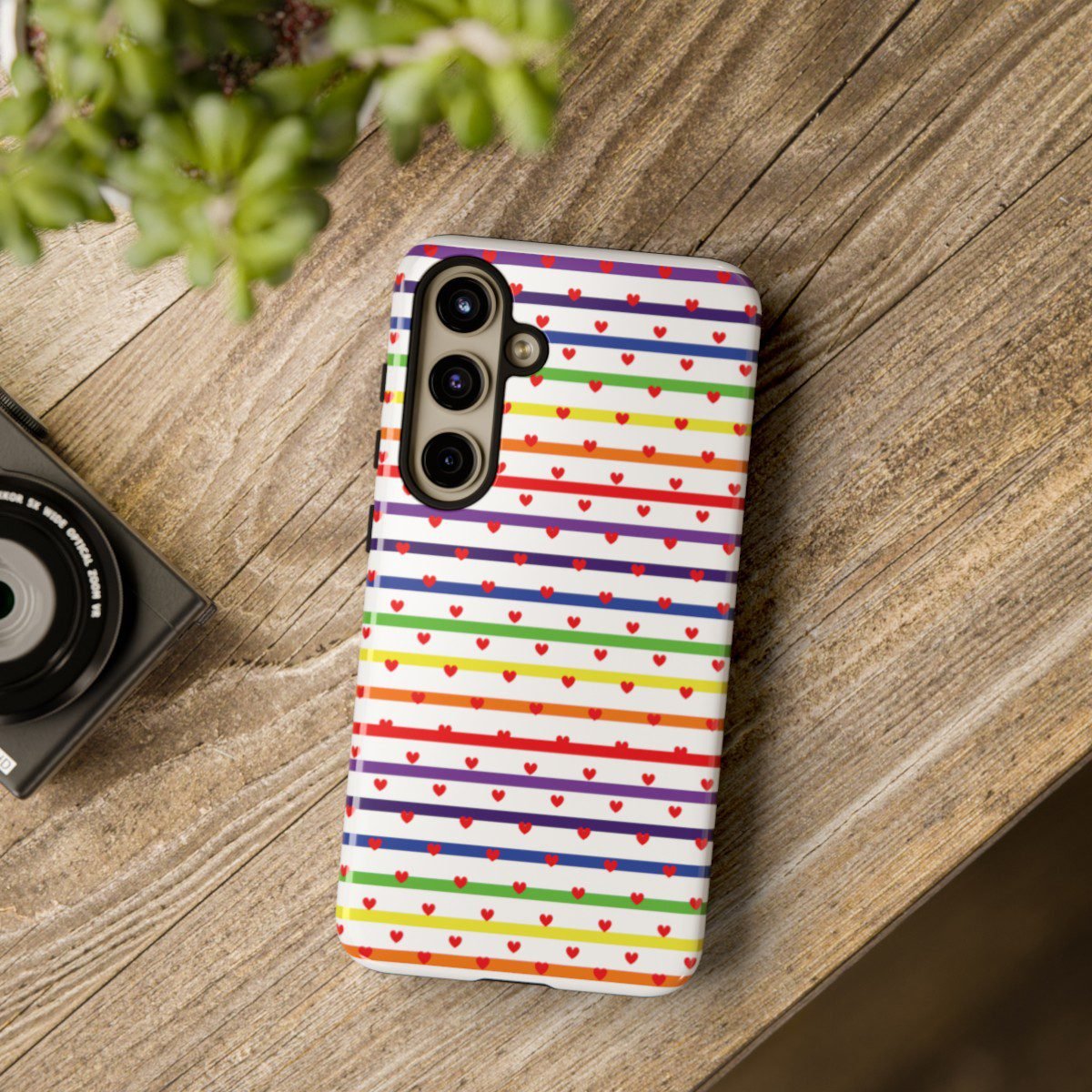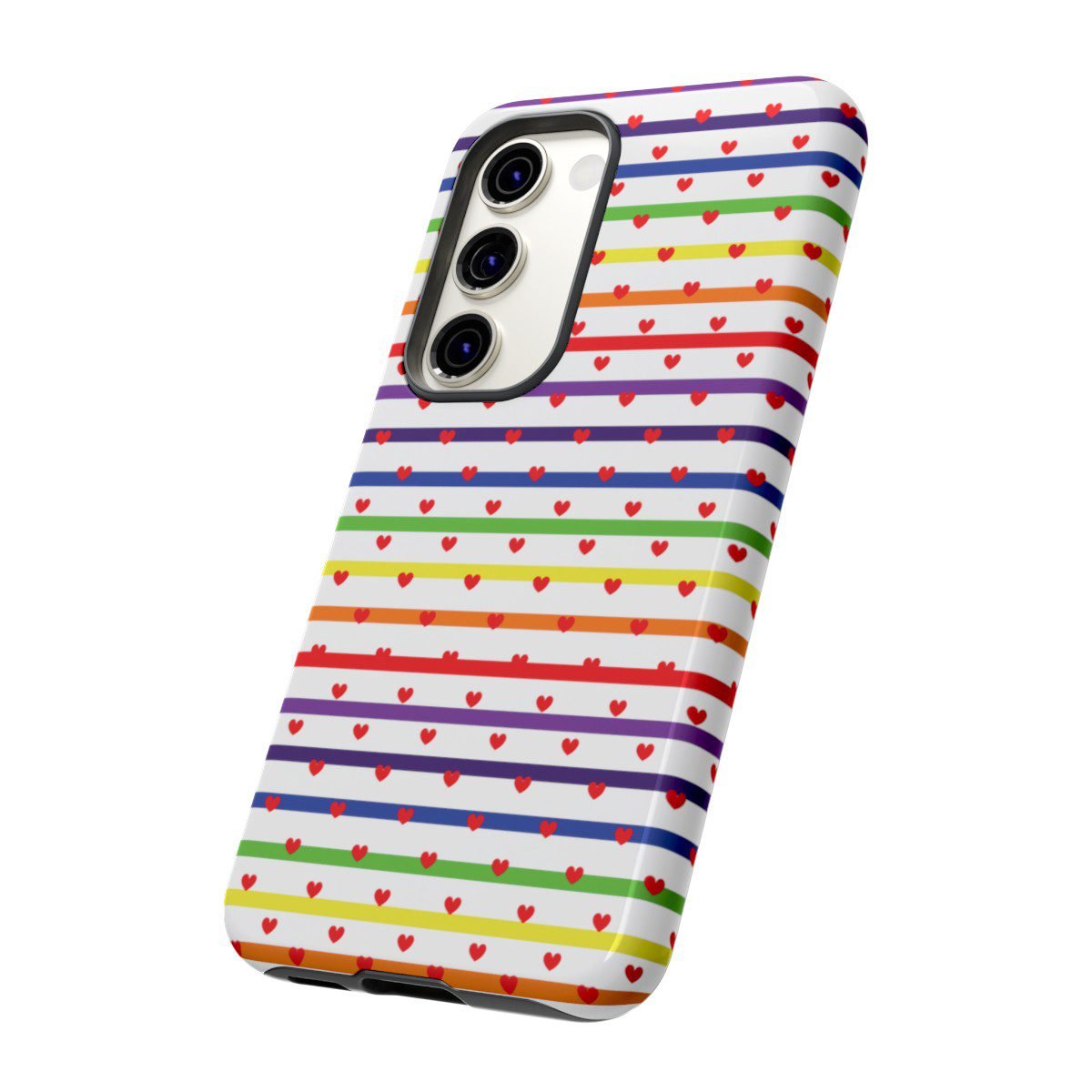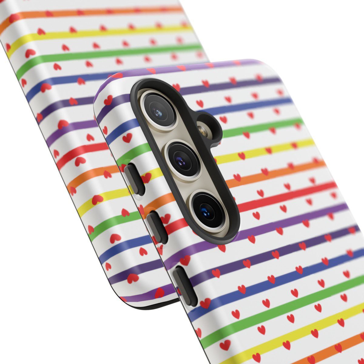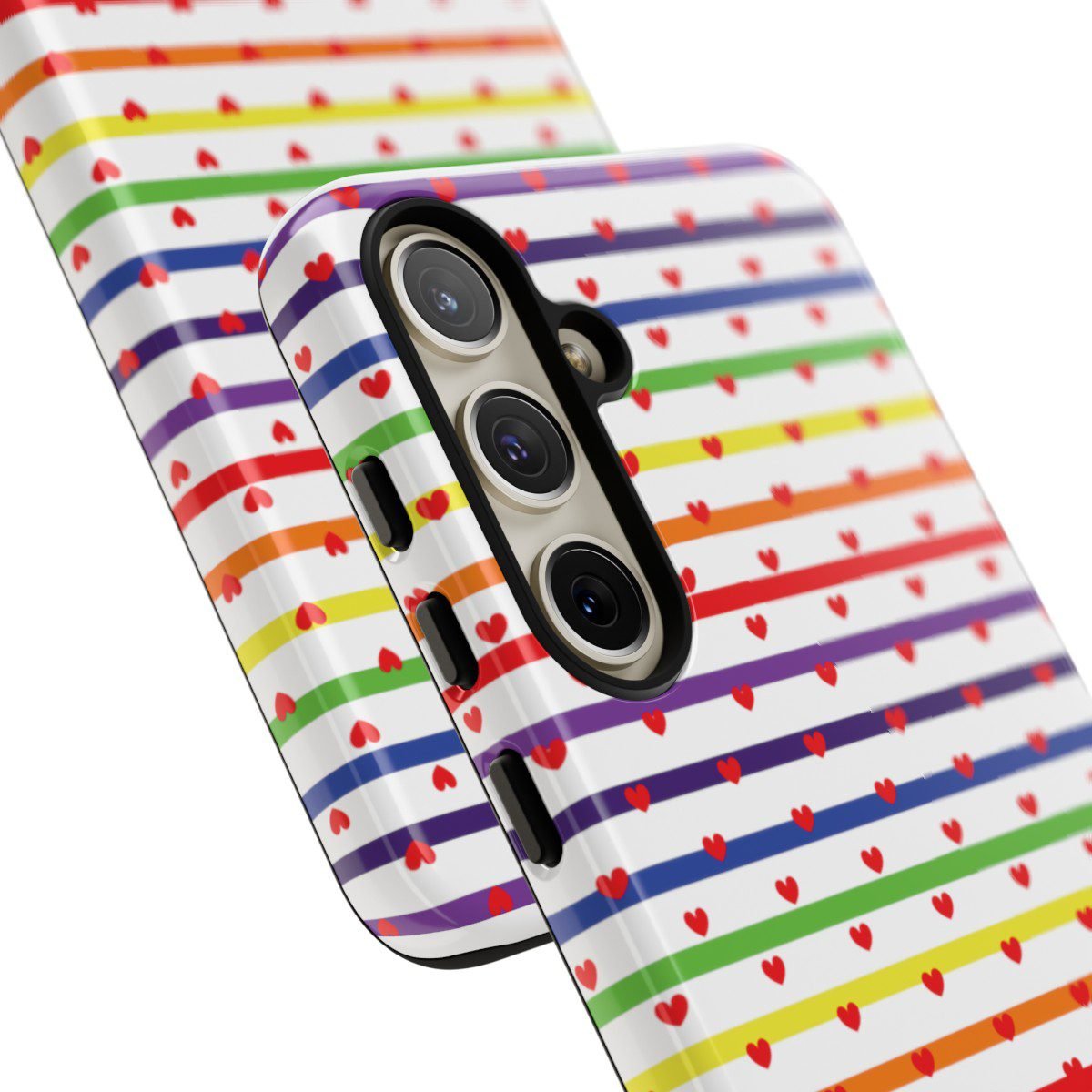 Rainbow and White Stripes With Hearts – Samsung Galaxy S22 S23 S24 – Cell Phone – Tough Cases.