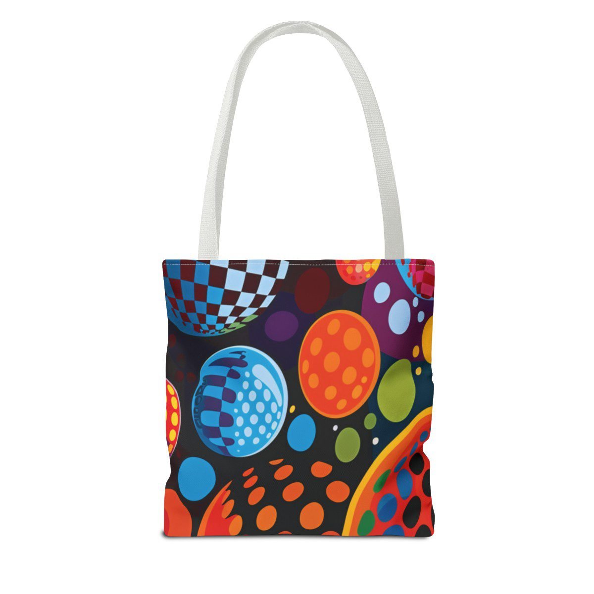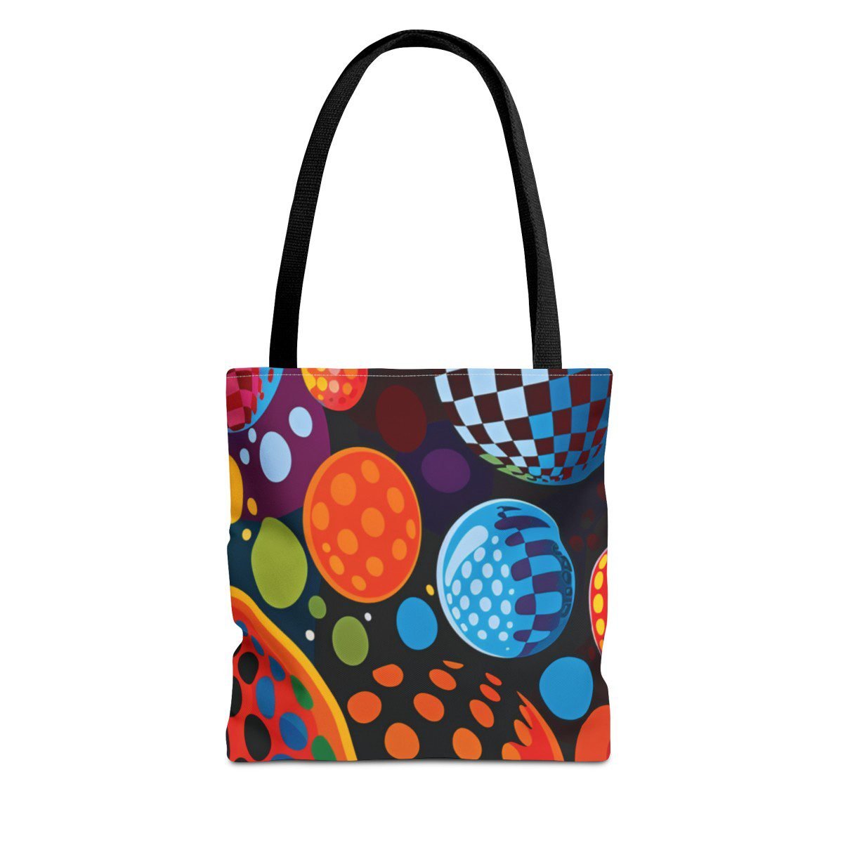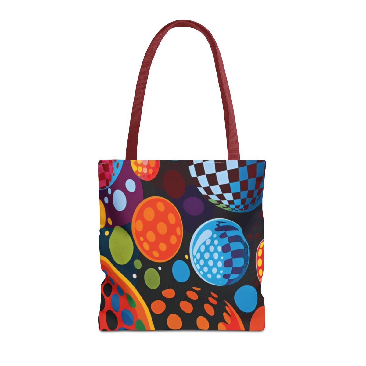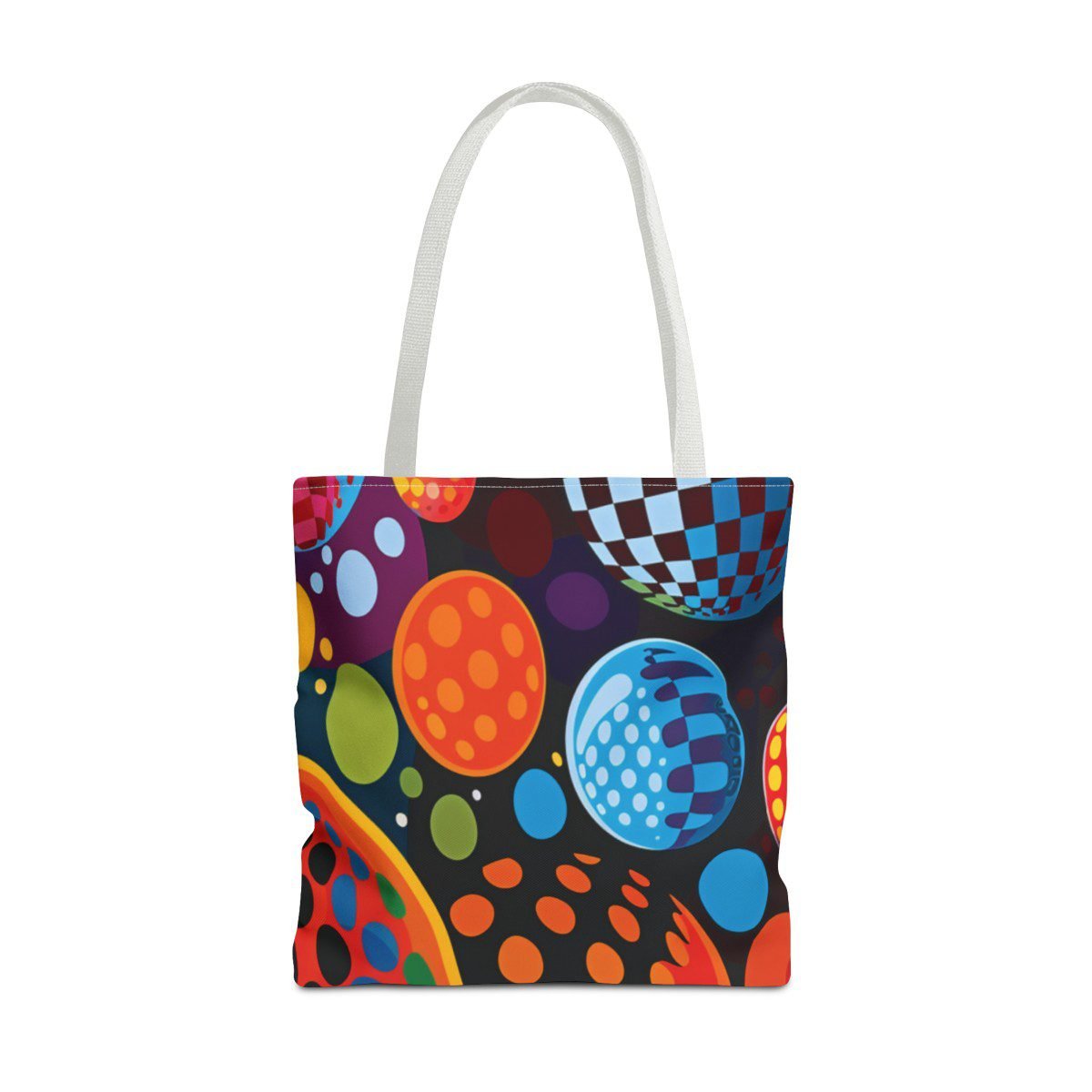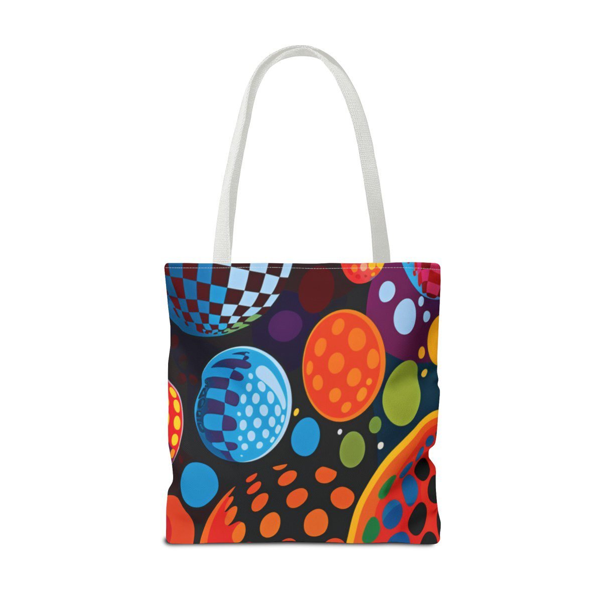 Tote Bag – Popart Abstract Disco Balls – Retro – Black Background – Choice of Handle Color.
