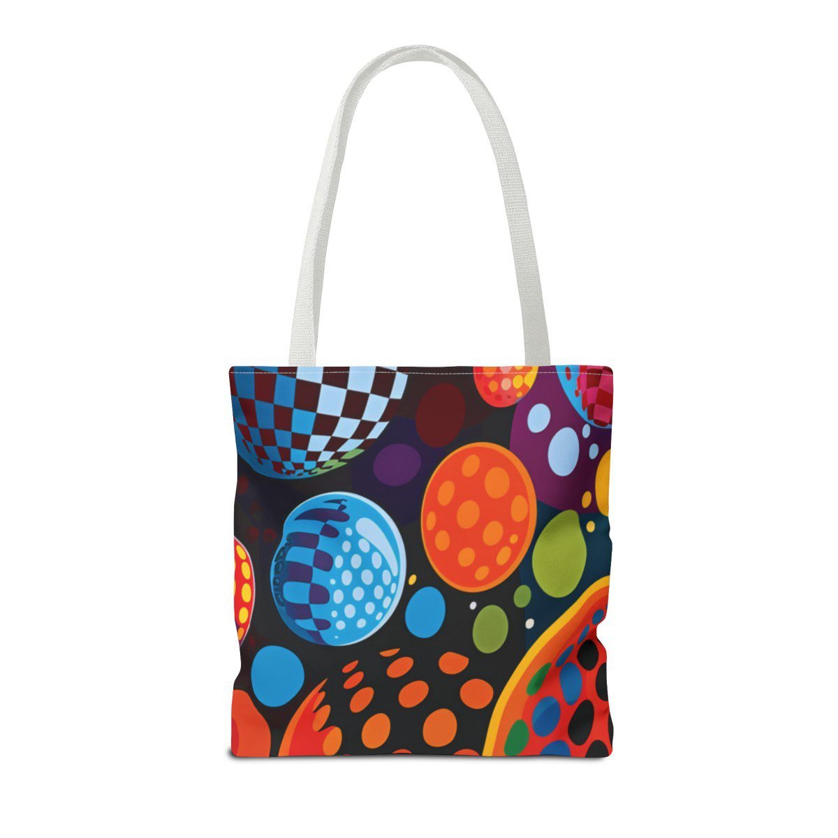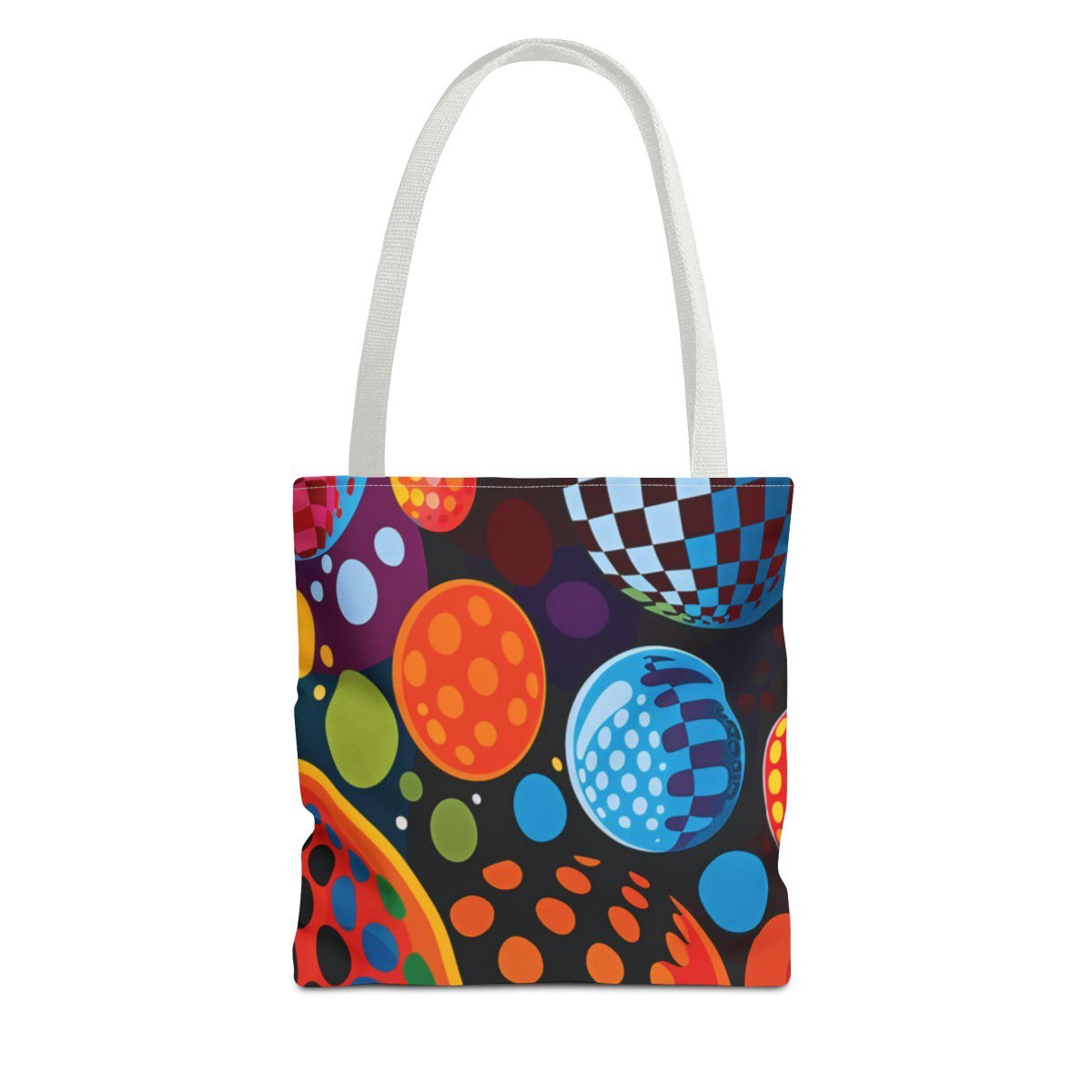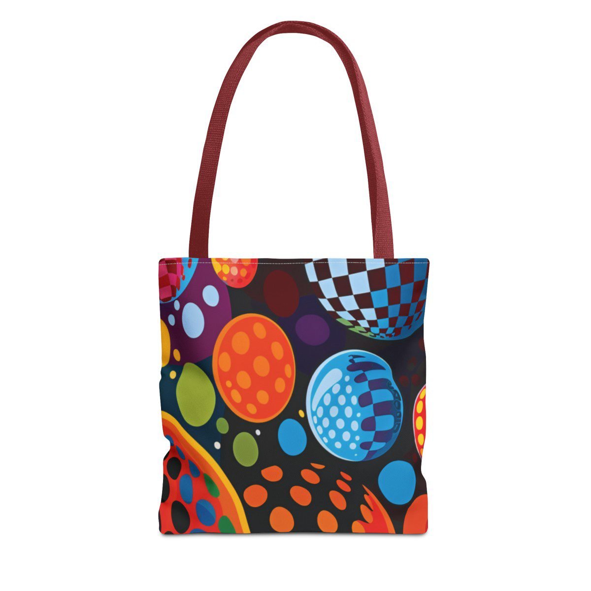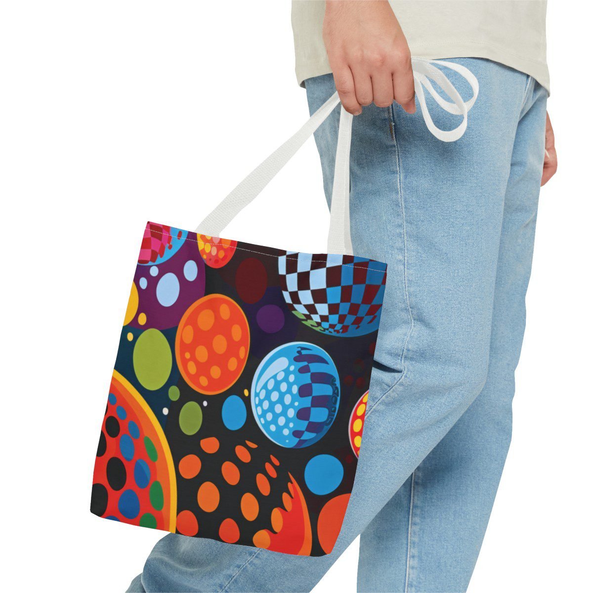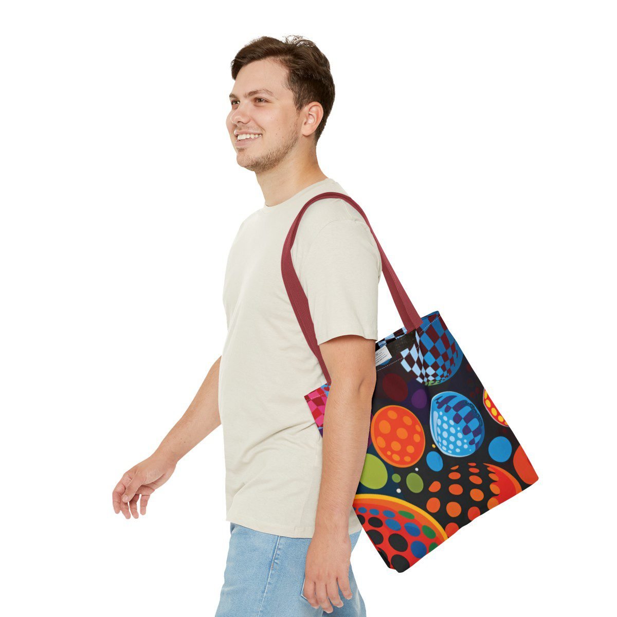 Tote Bag – Popart Abstract Disco Balls – Retro – Black Background – Choice of Handle Color.