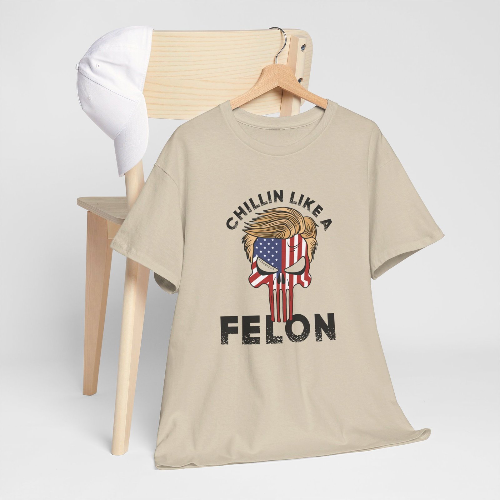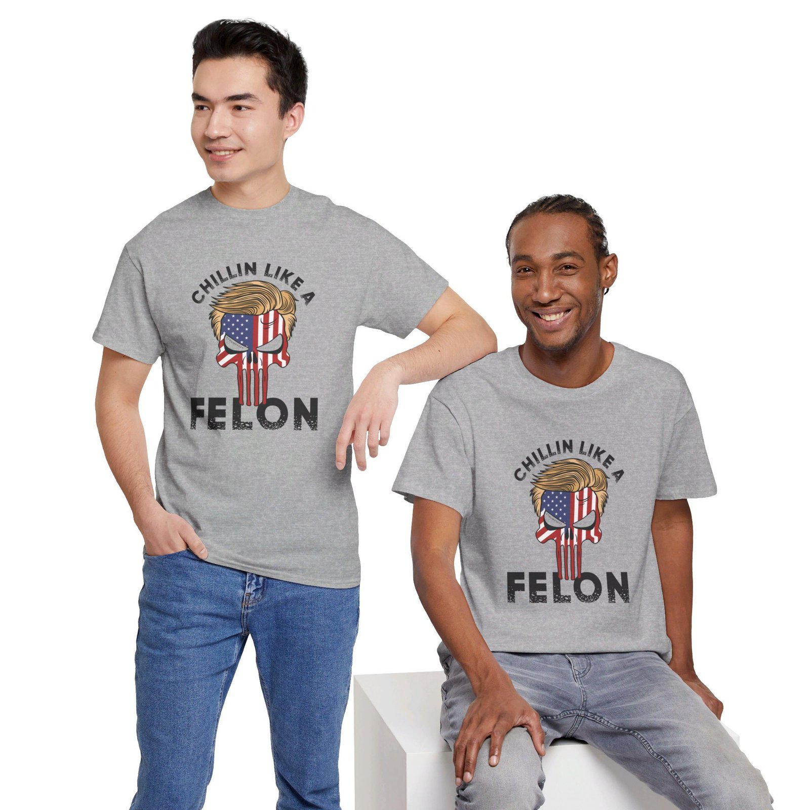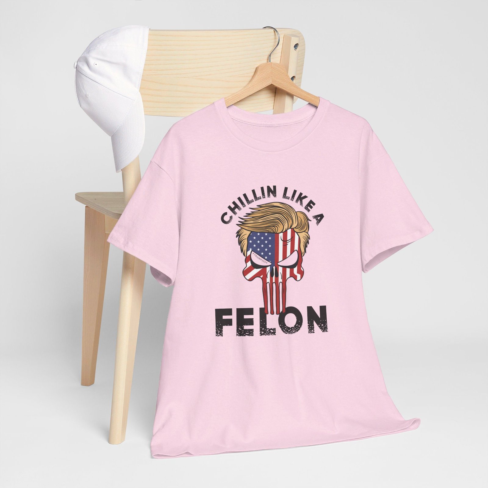 Trump 2024 – Chillin Like A Felon – Election – Choice of Colors – Unisex Heavy Cotton Tee.