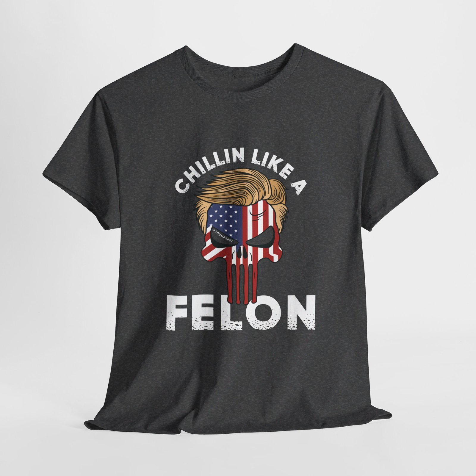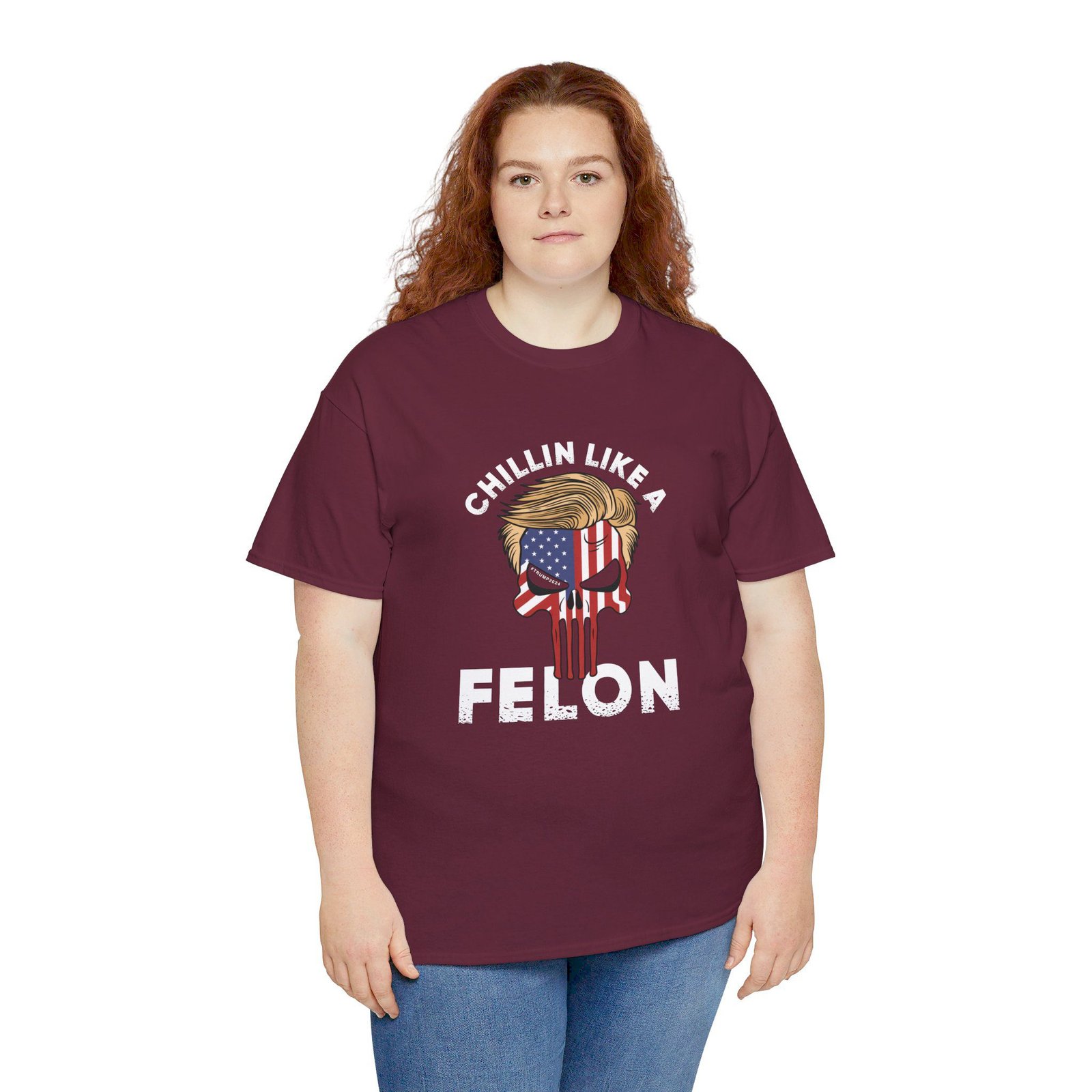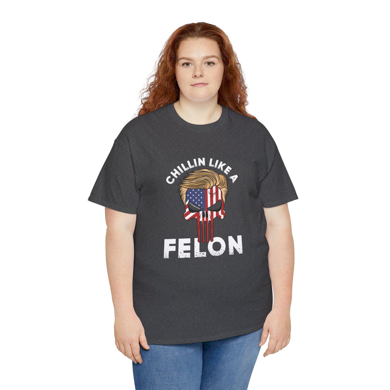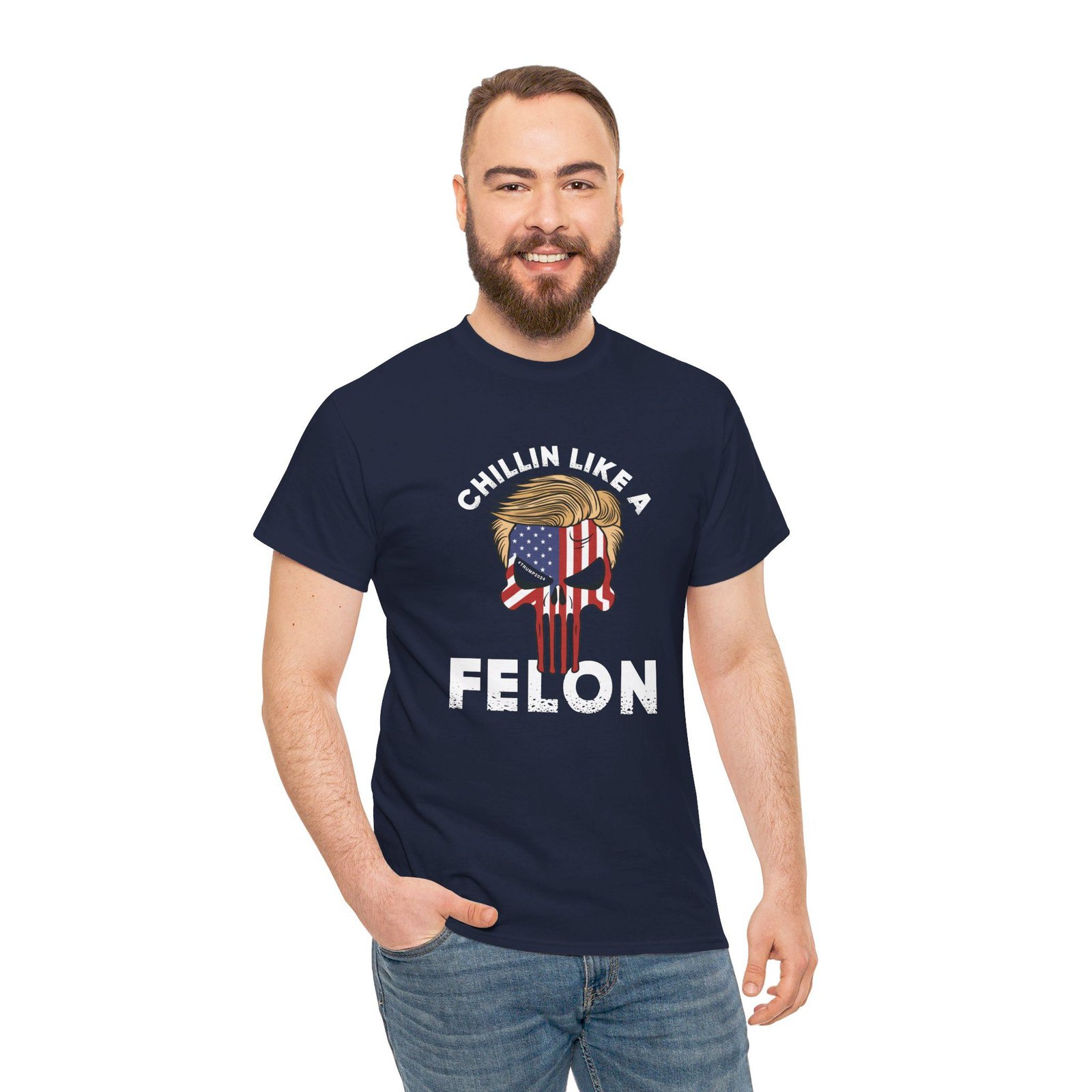Trump 2024 – Chillin Like A Felon – Election – Fight – Unisex Heavy Cotton Tee.