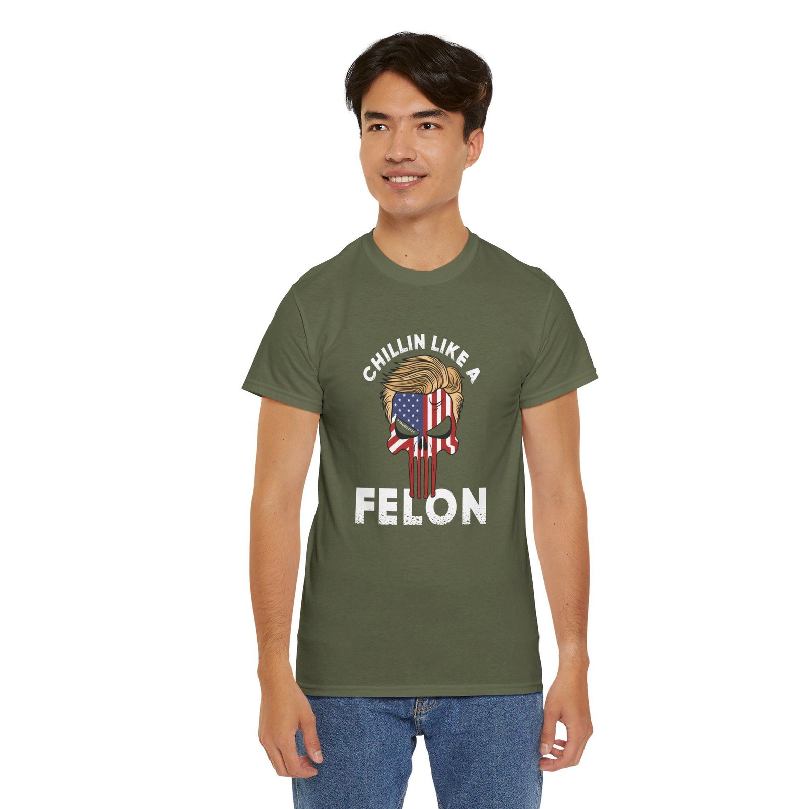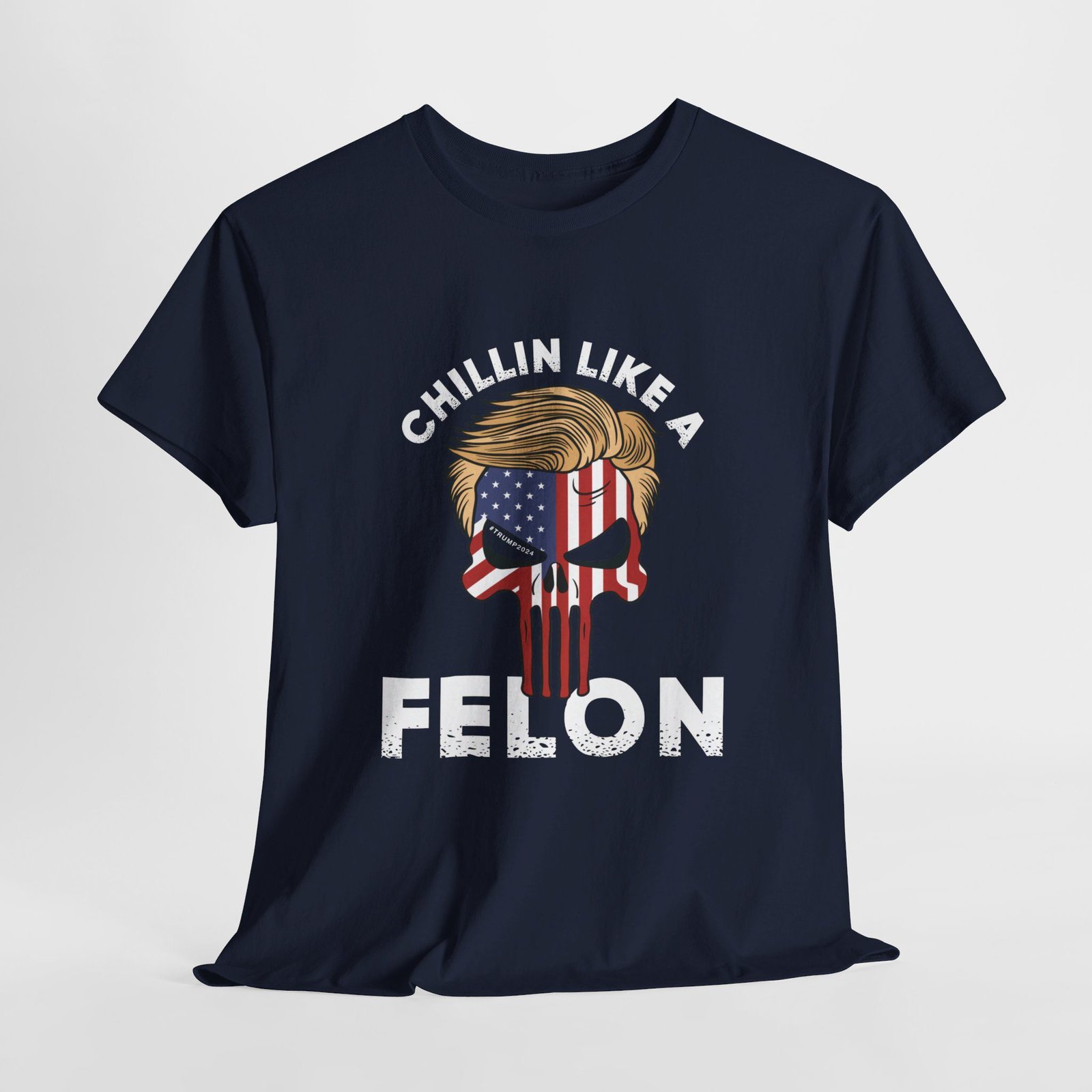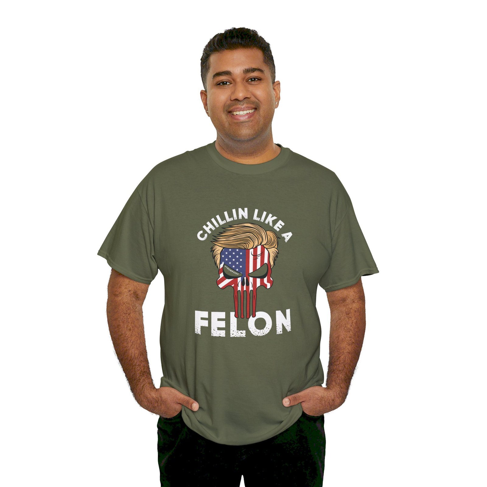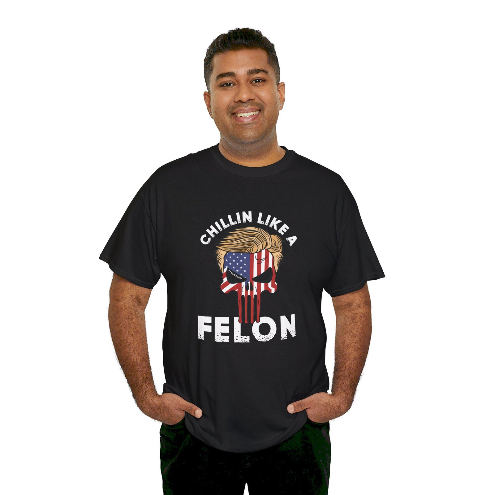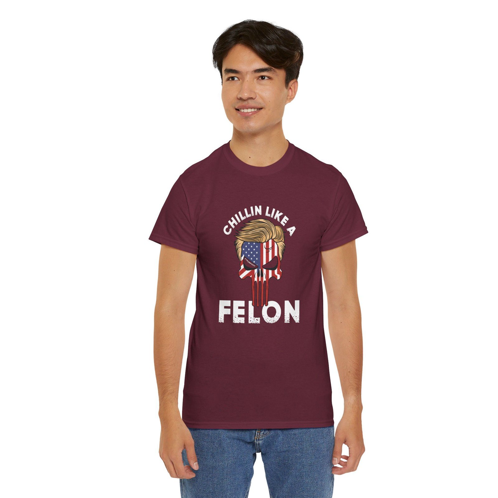 Trump 2024 – Chillin Like A Felon – Election – Fight – Unisex Heavy Cotton Tee.