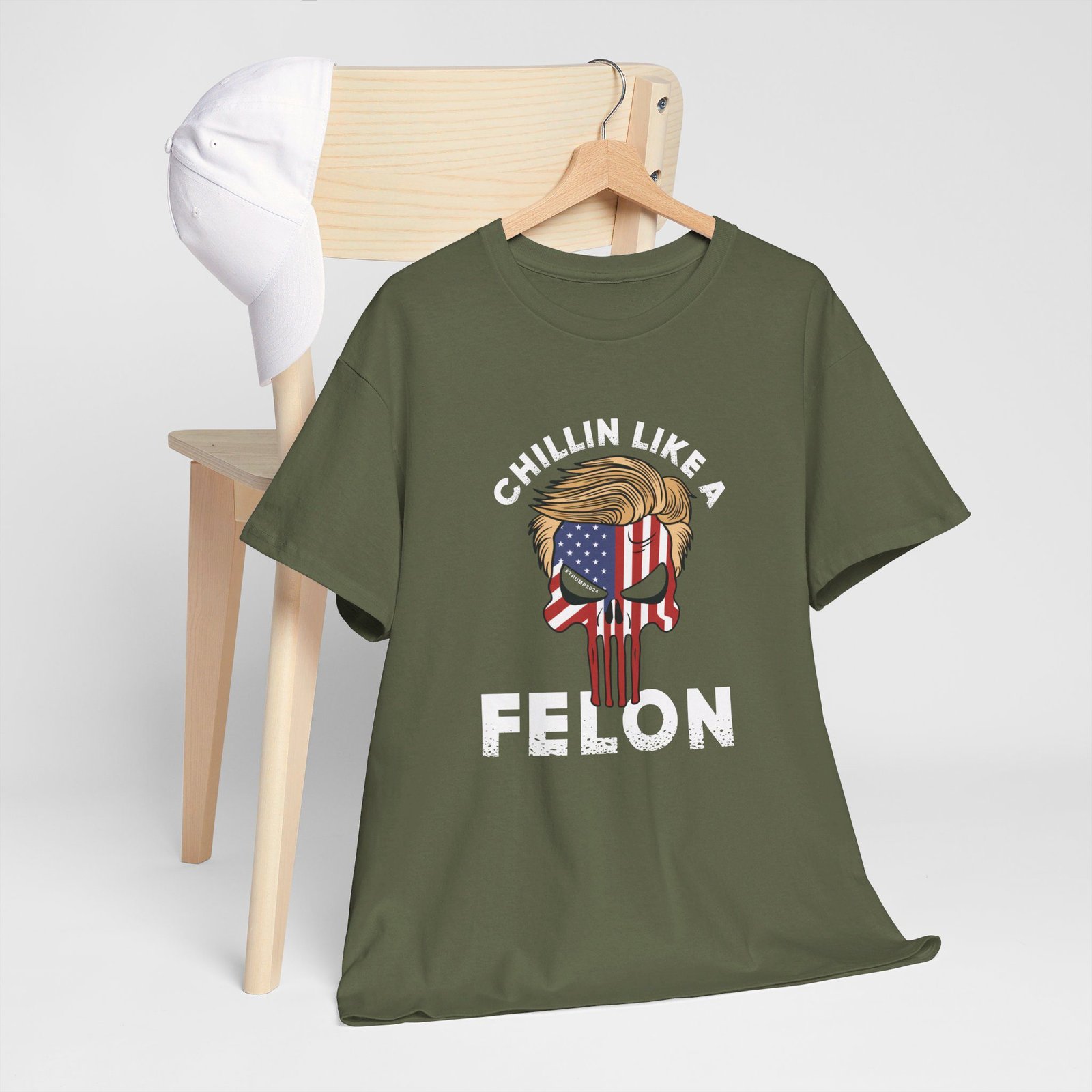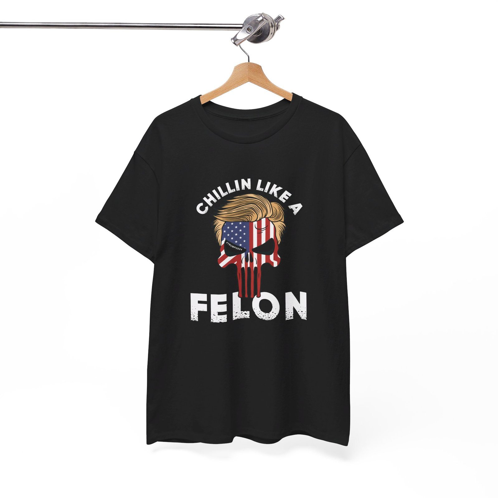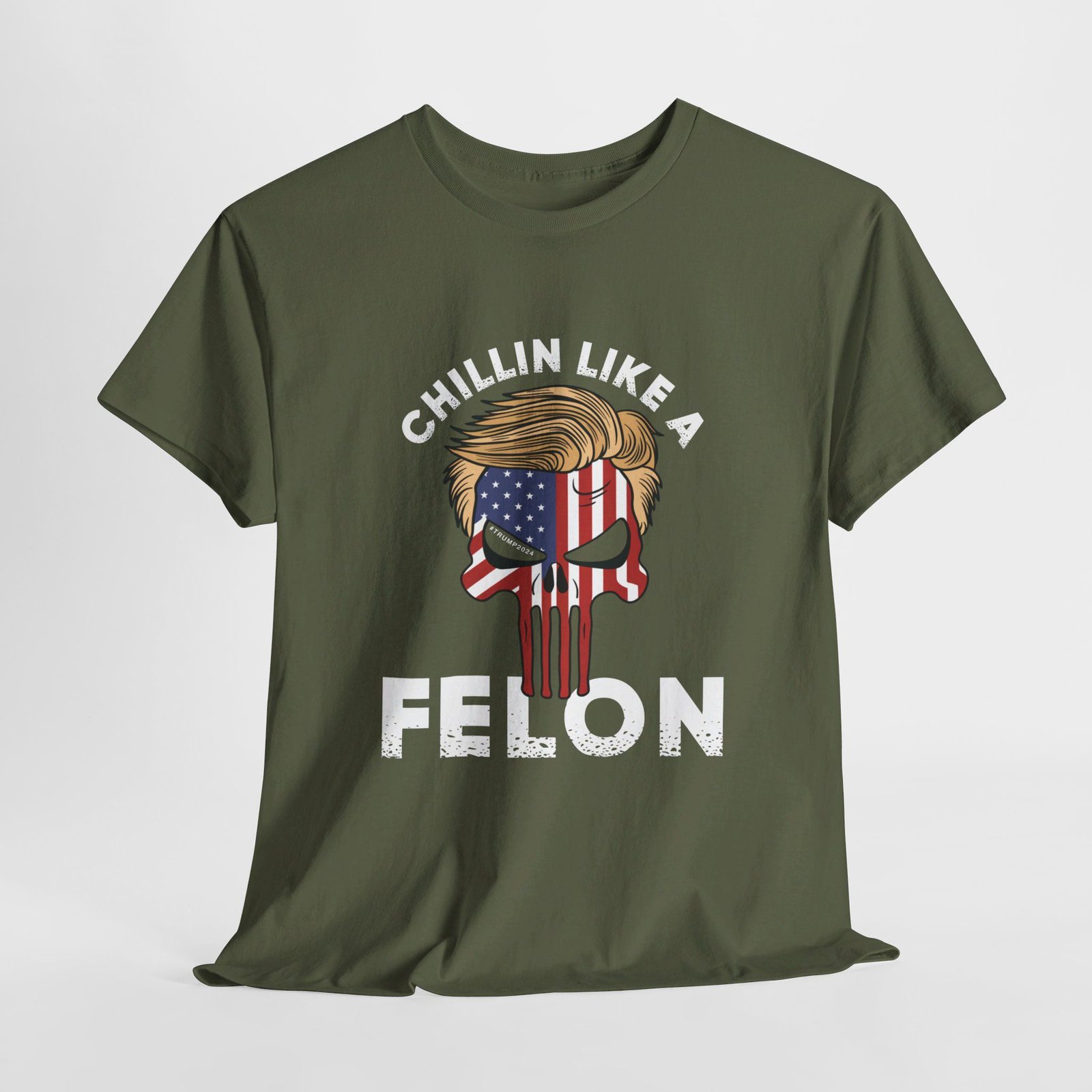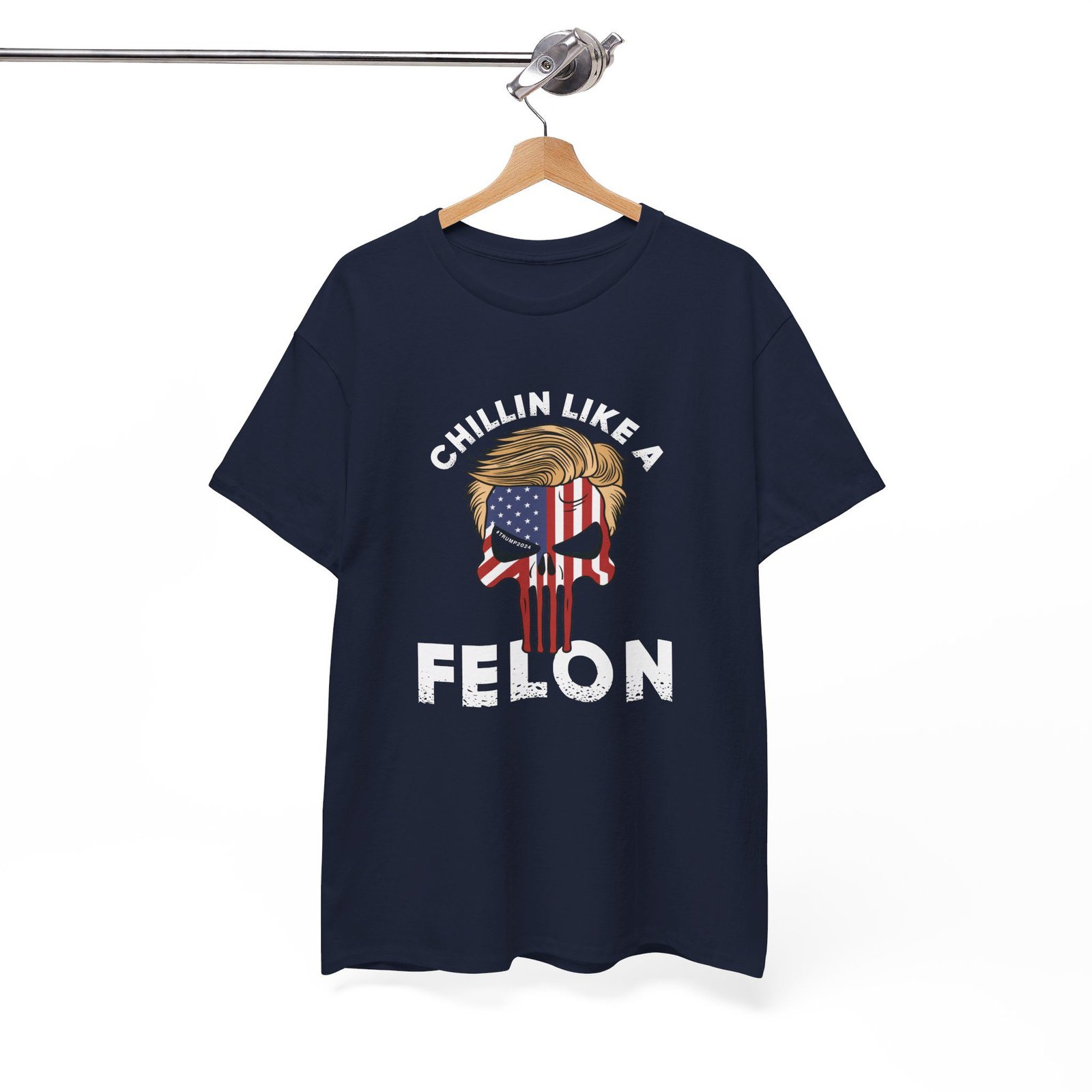 Trump 2024 – Chillin Like A Felon – Election – Fight – Unisex Heavy Cotton Tee.