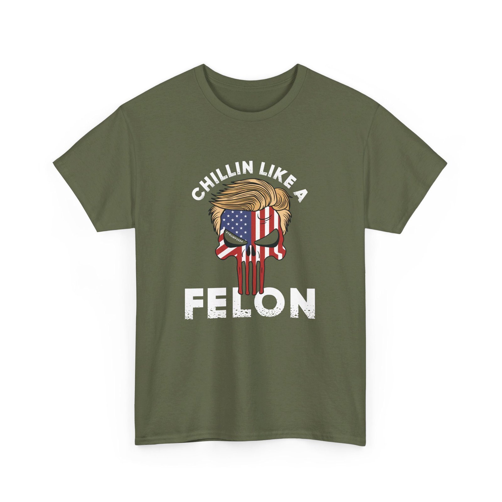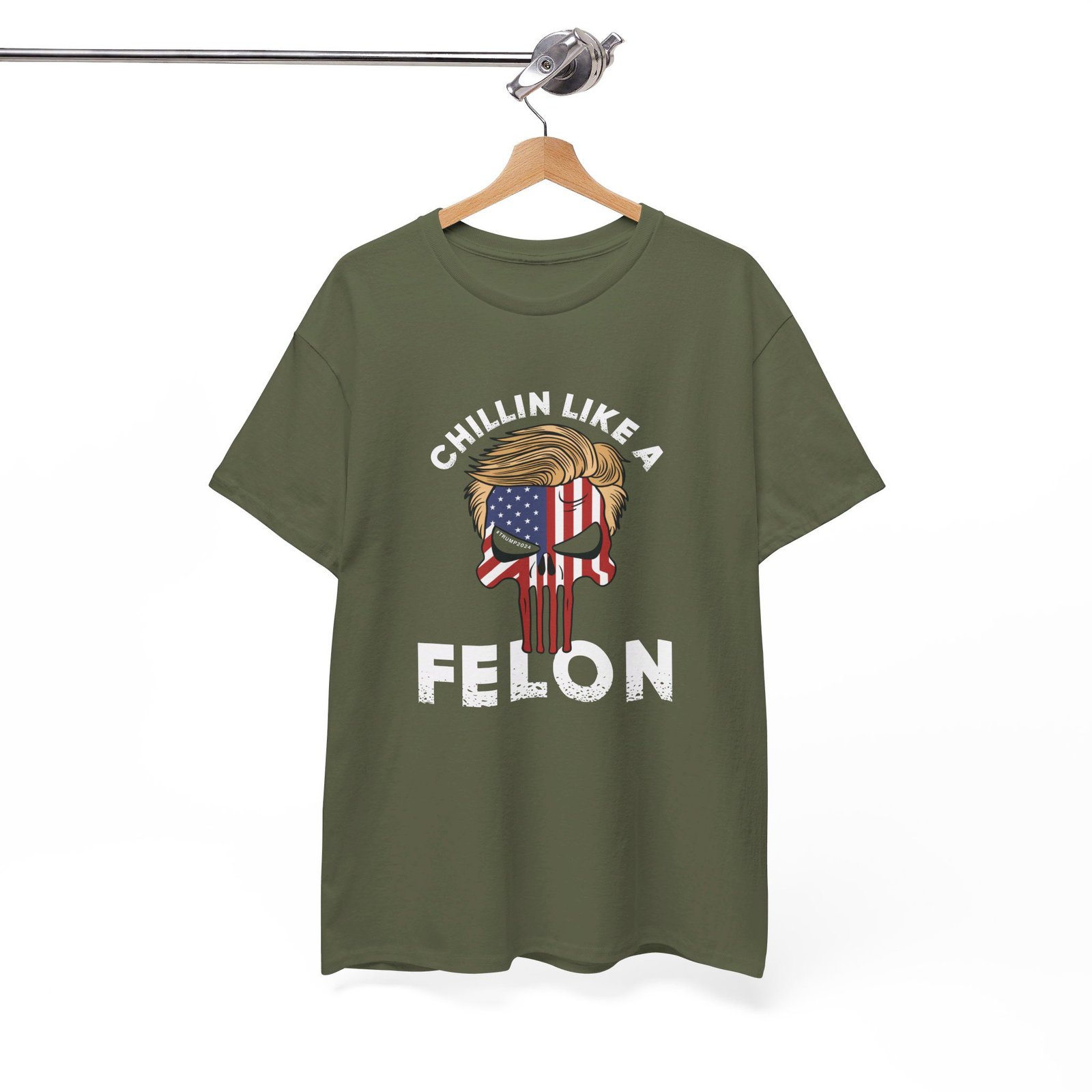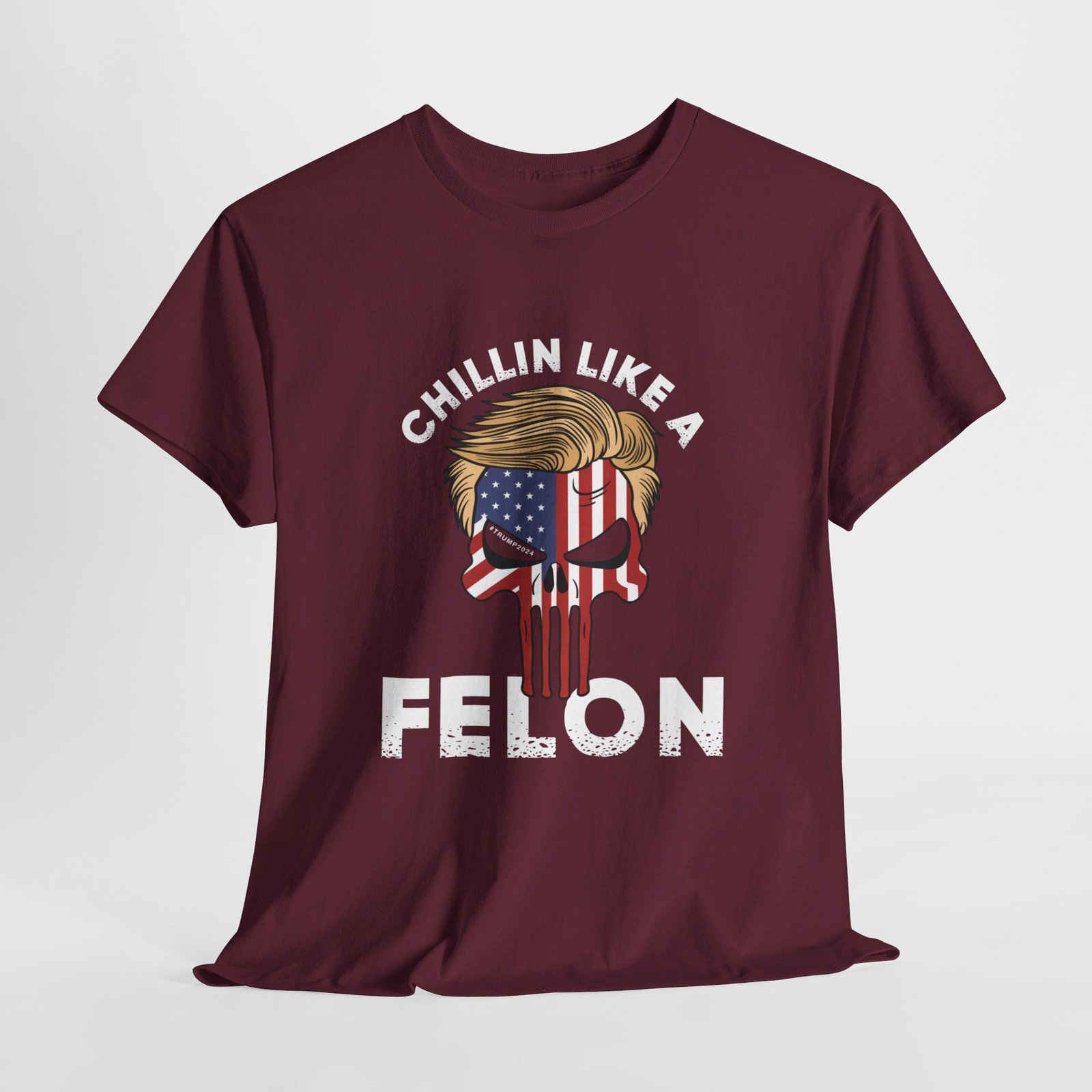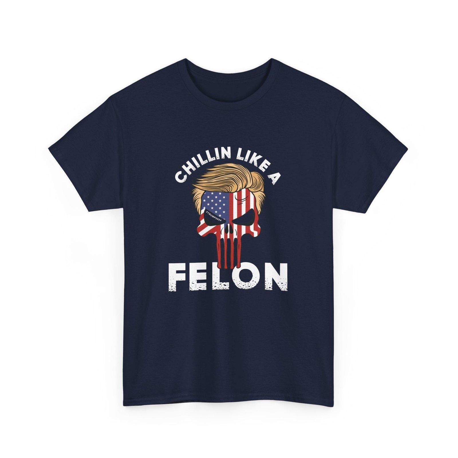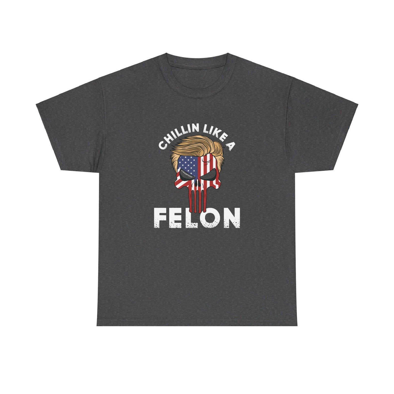 Trump 2024 – Chillin Like A Felon – Election – Fight – Unisex Heavy Cotton Tee.