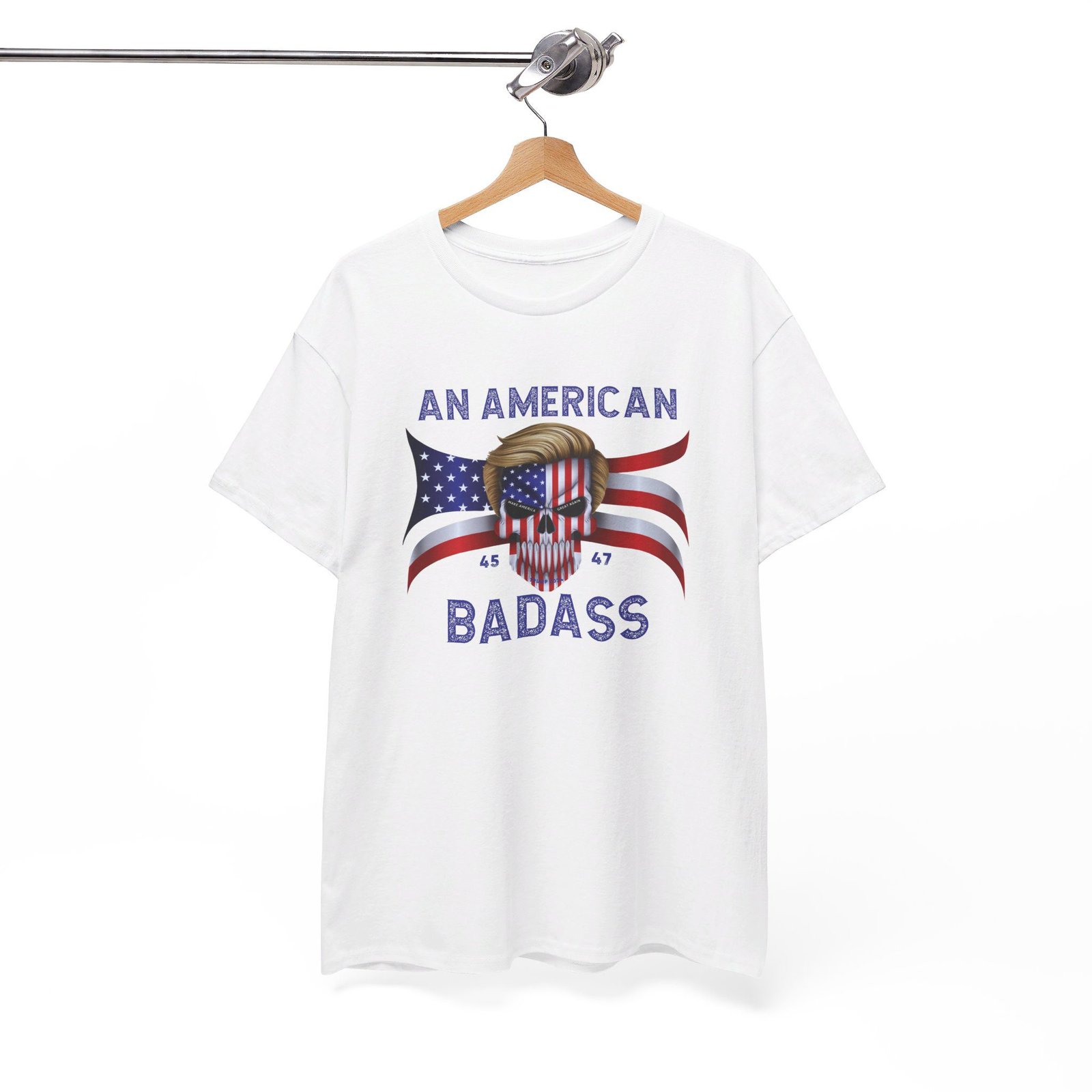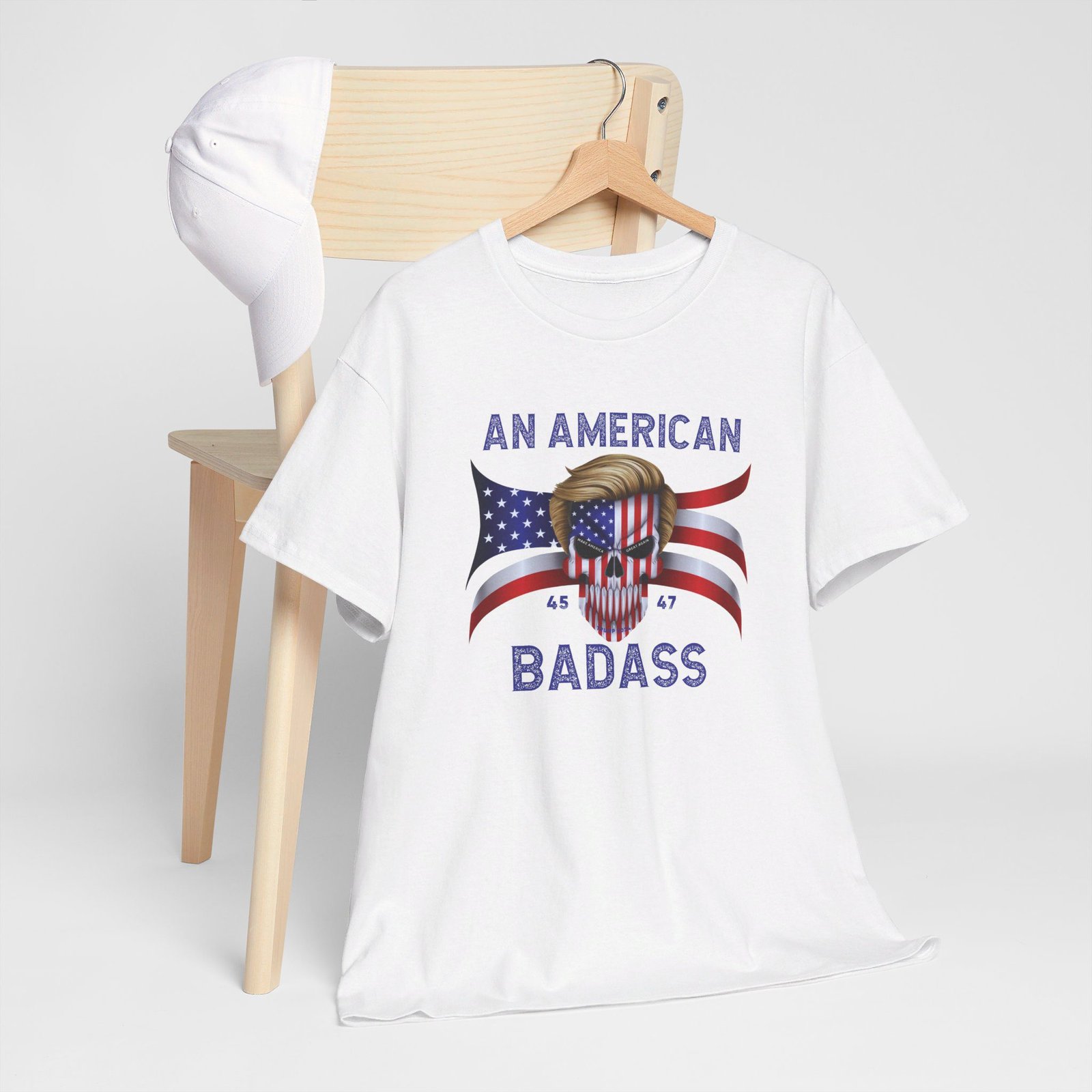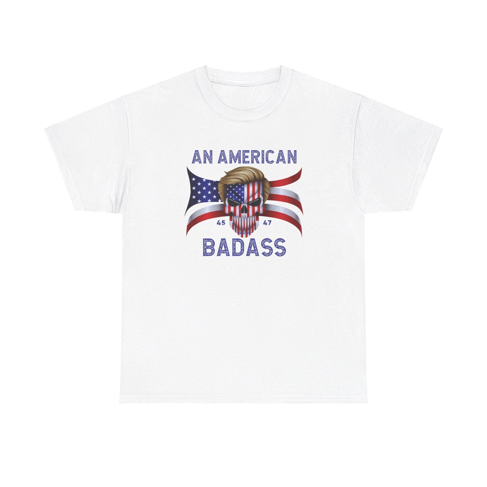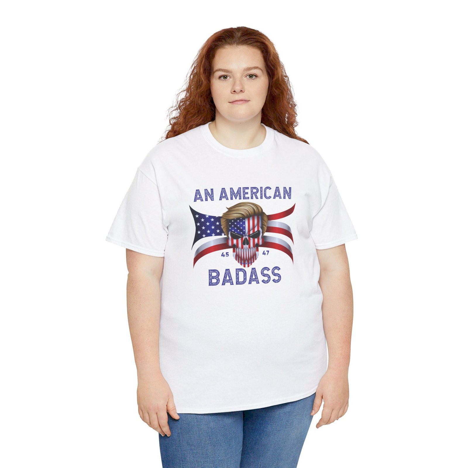 Trump – An American Badass – Make America Great Again MAGA – White – Unisex Heavy Cotton Tee