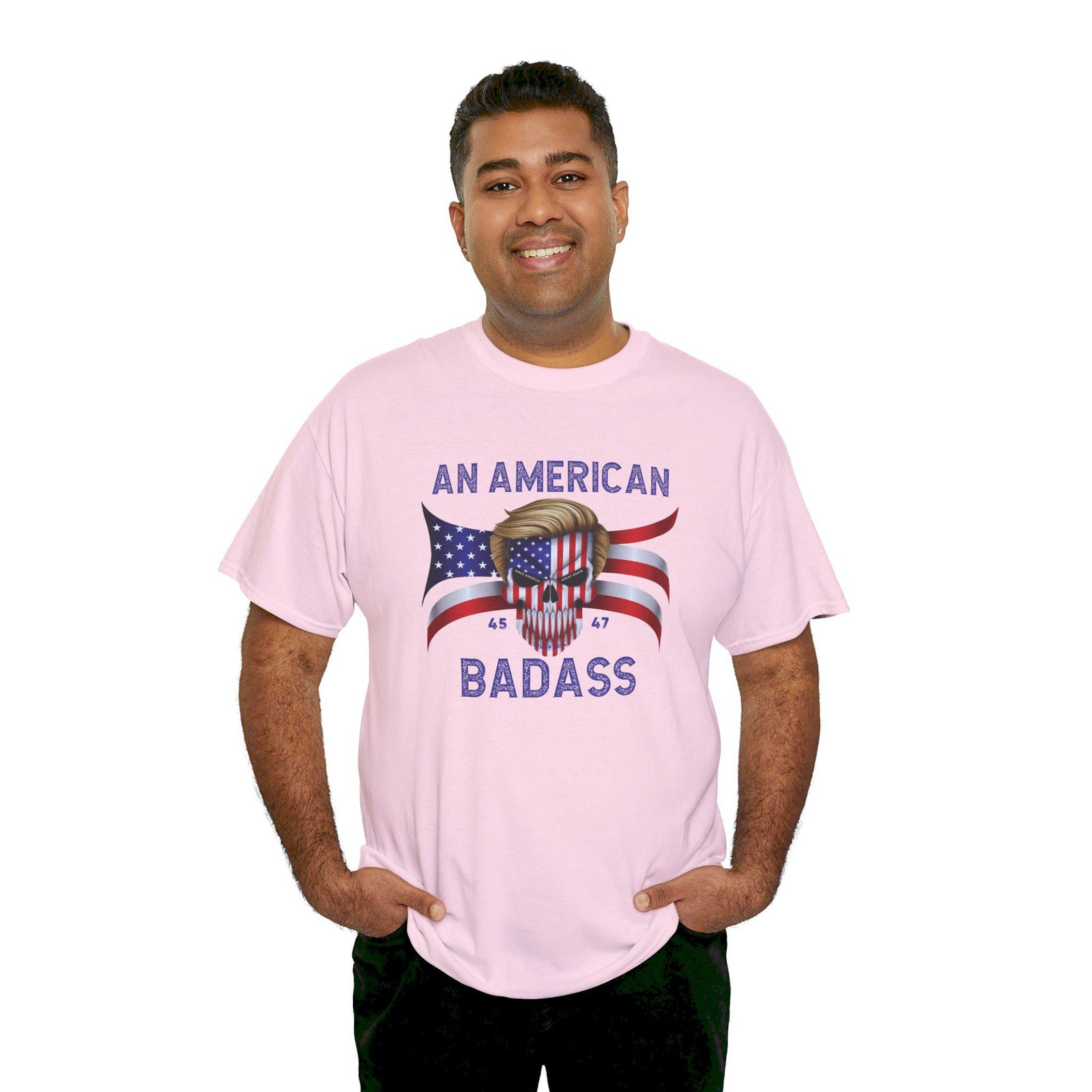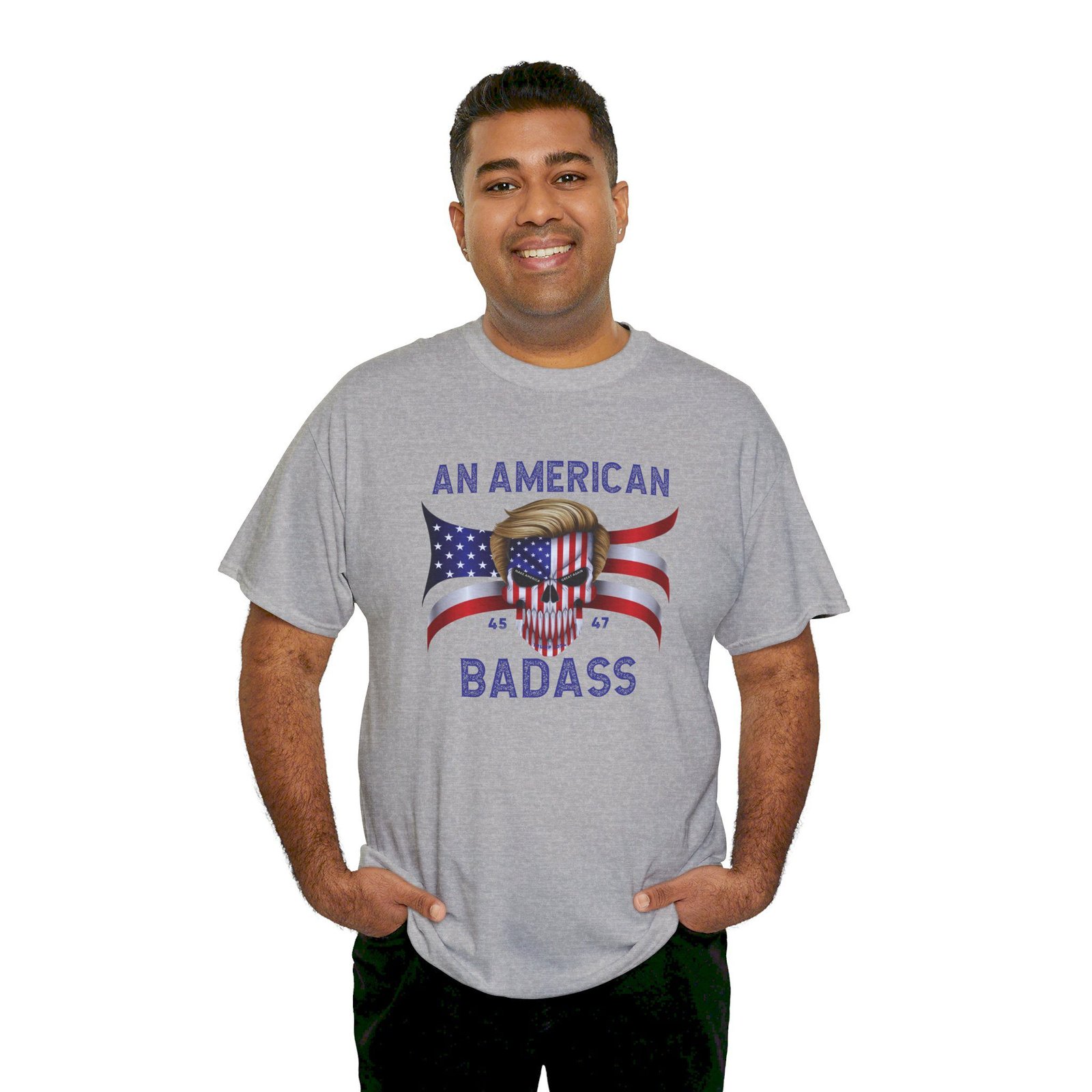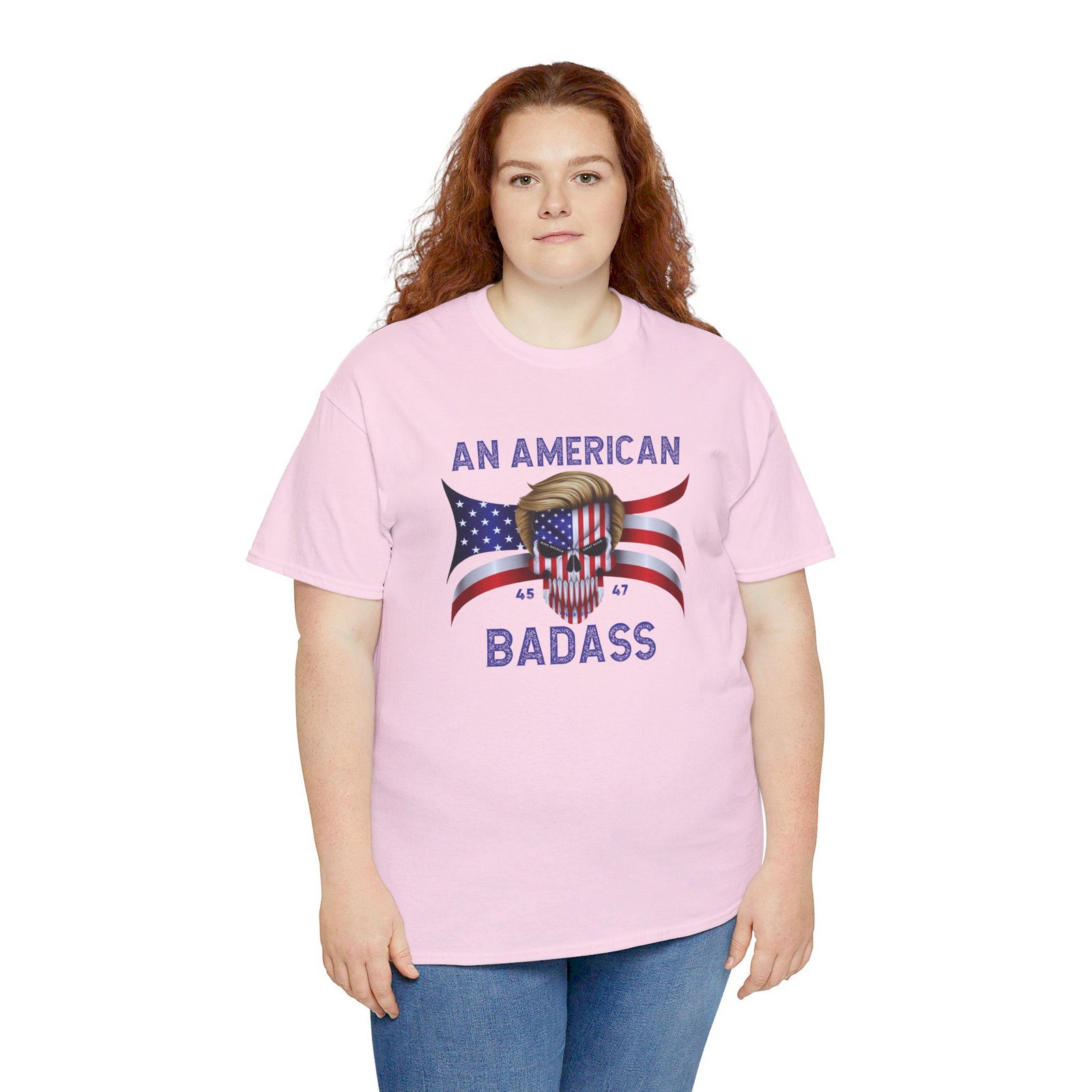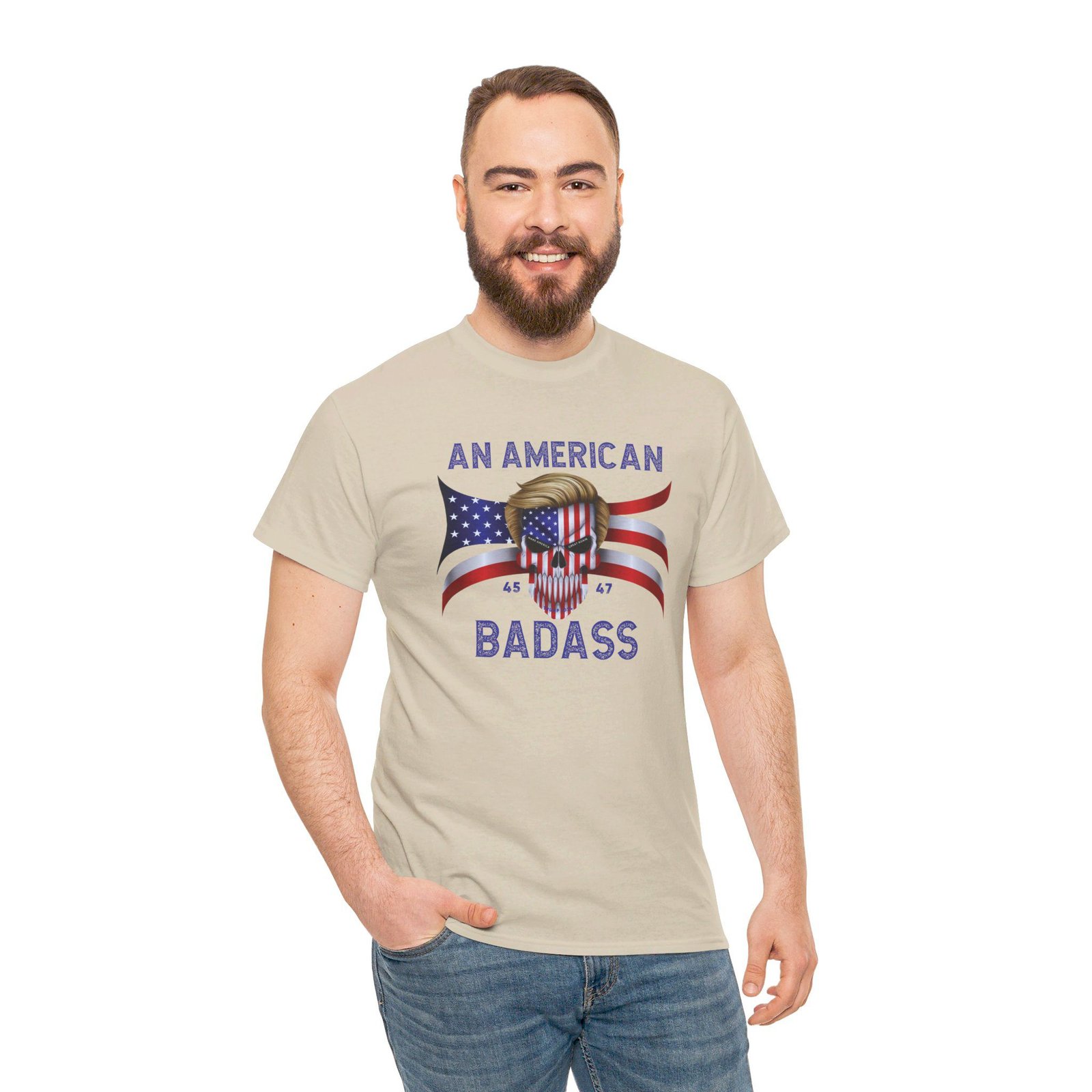 Trump – An American Badass – Make America Great Again MAGA – White – Unisex Heavy Cotton Tee