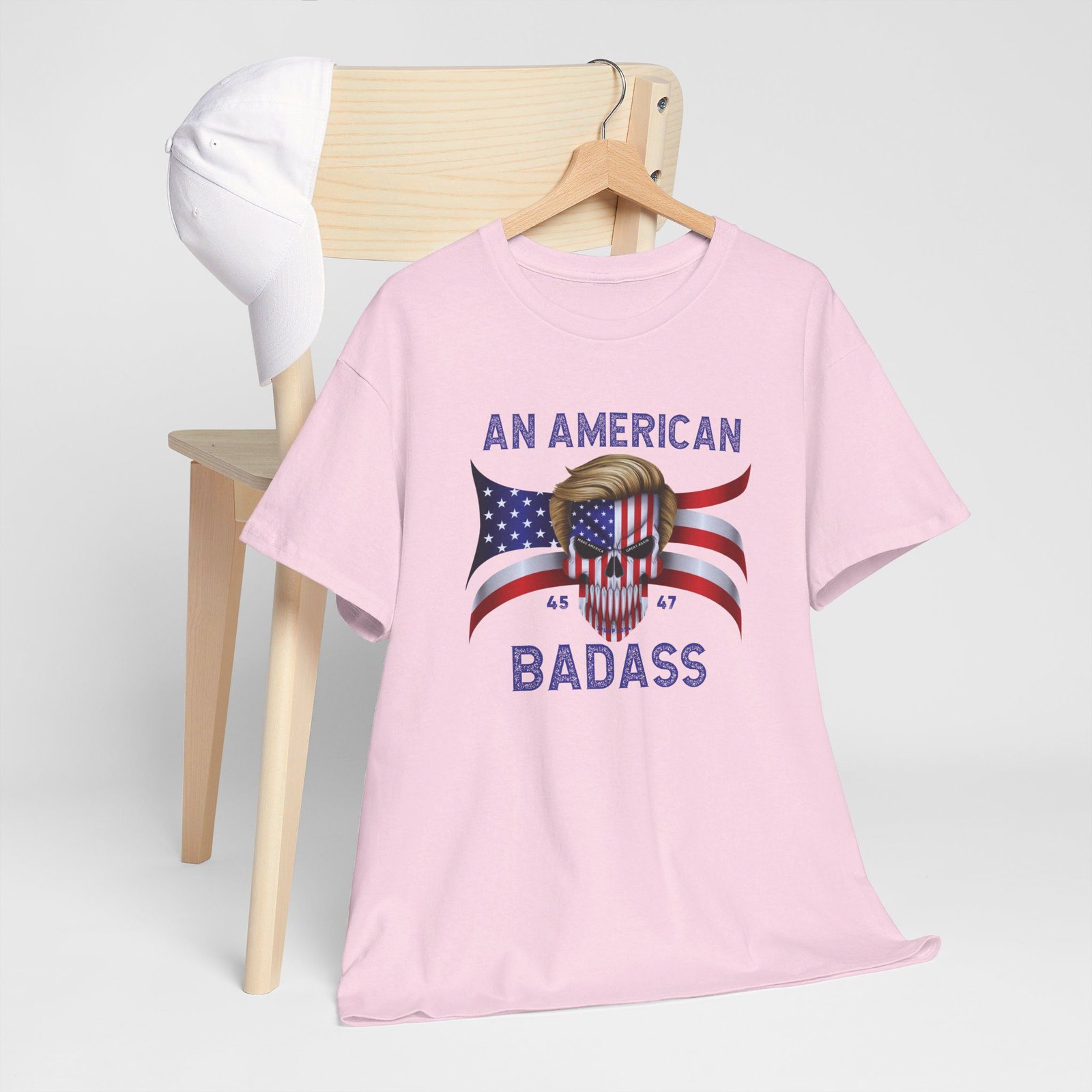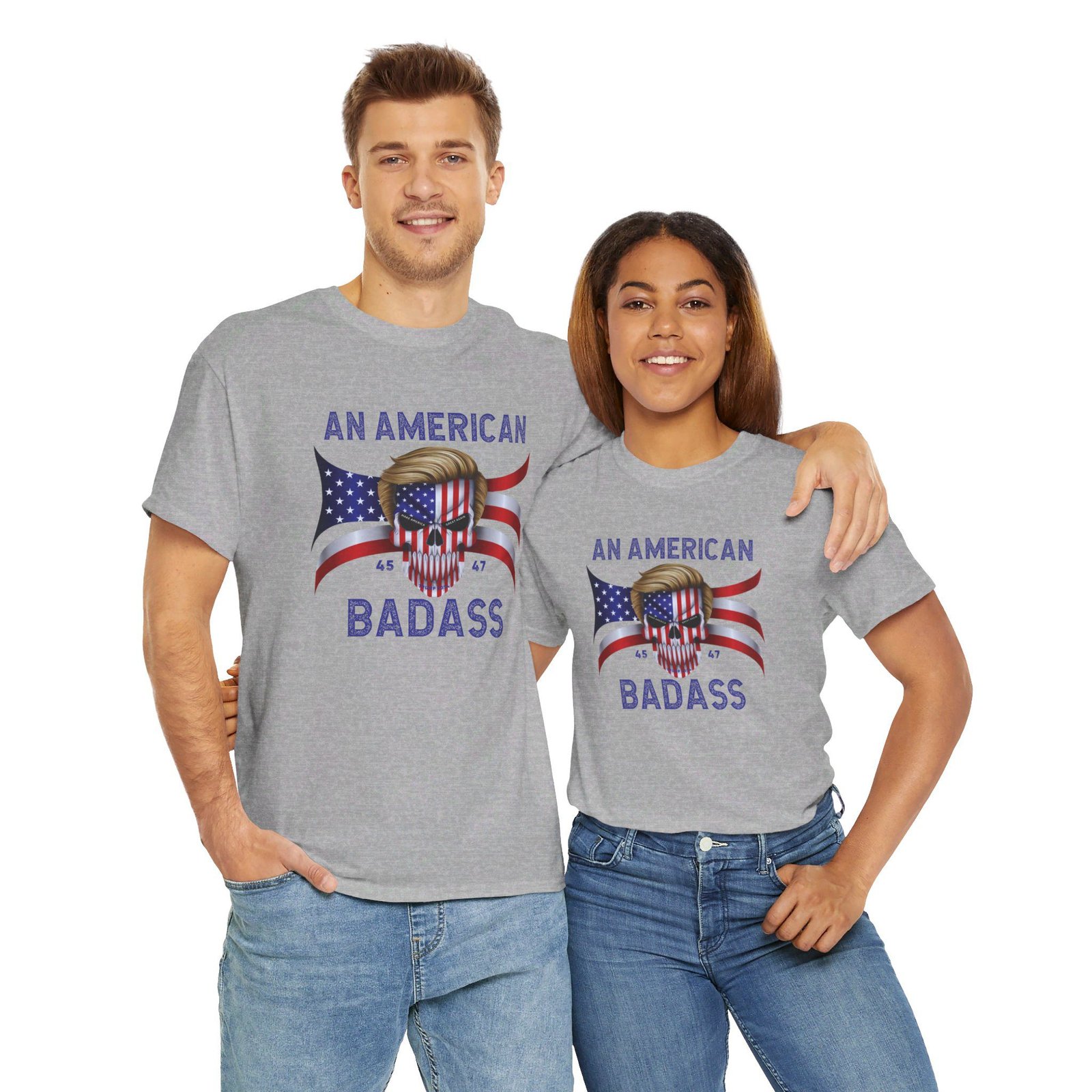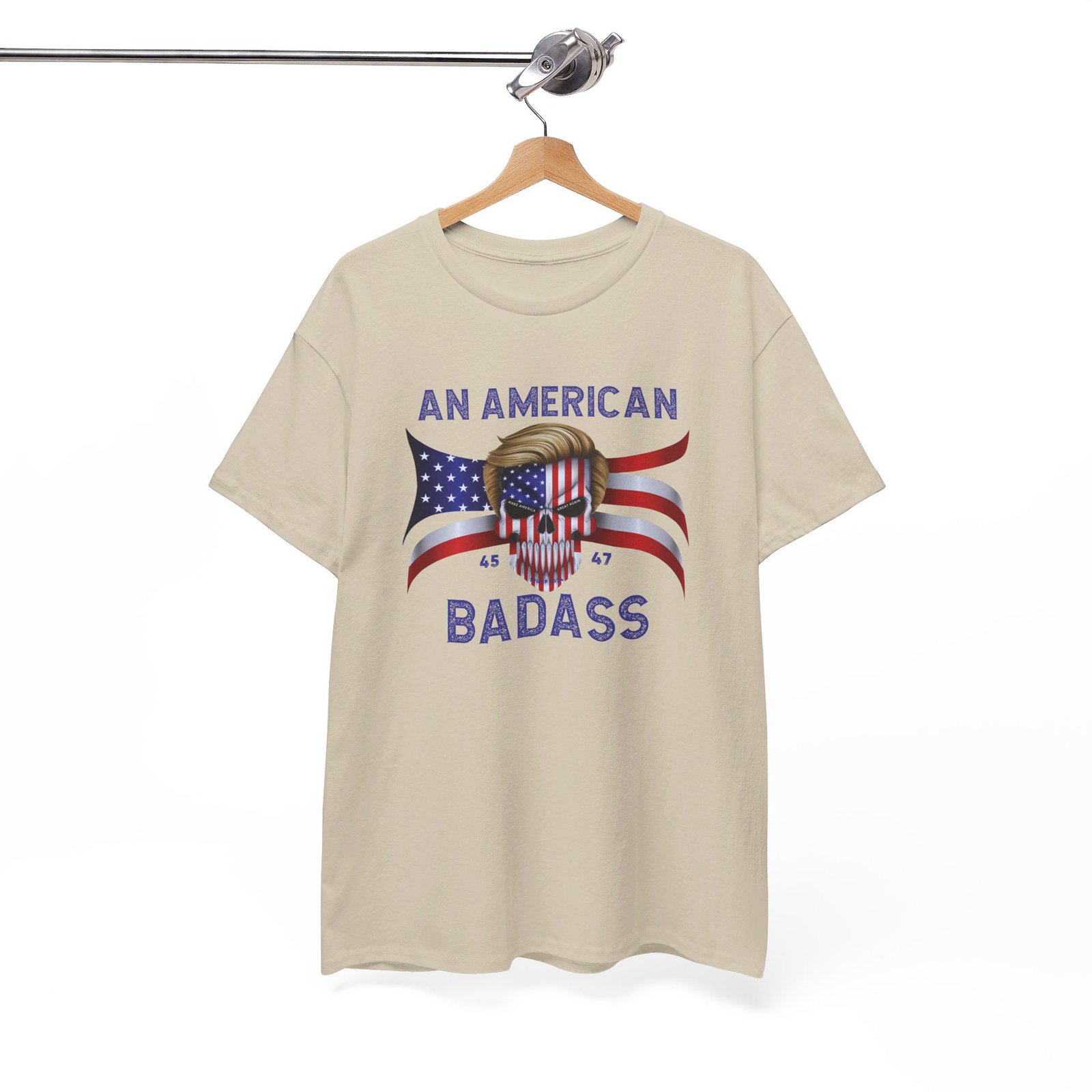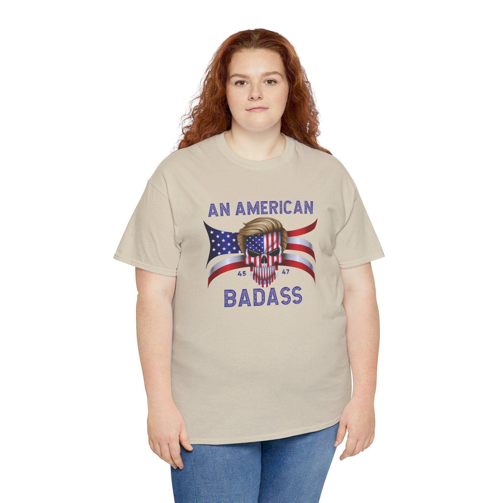 Trump – An American Badass – Make America Great Again MAGA – White – Unisex Heavy Cotton Tee