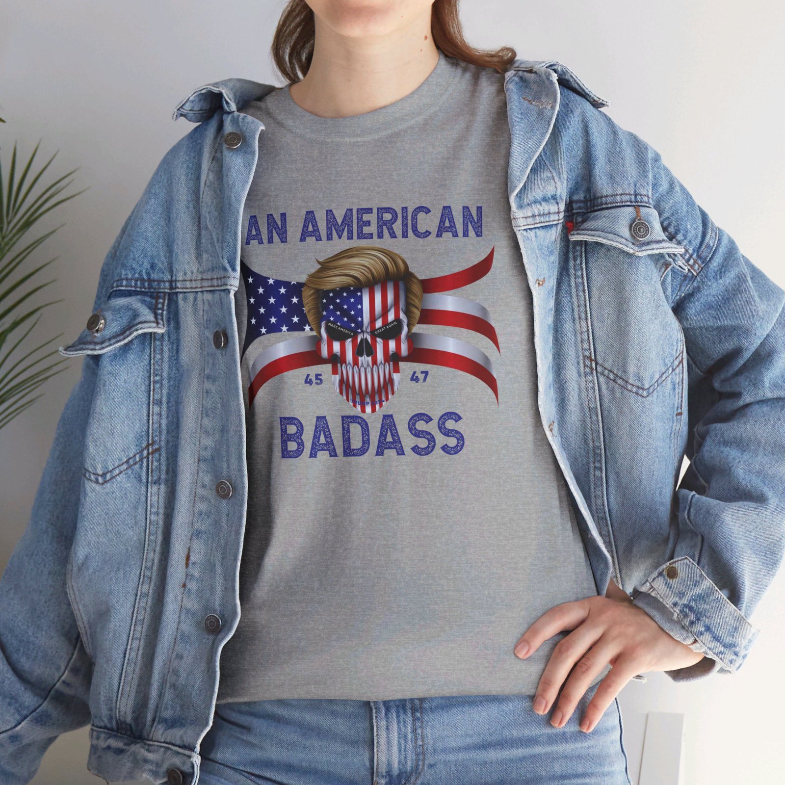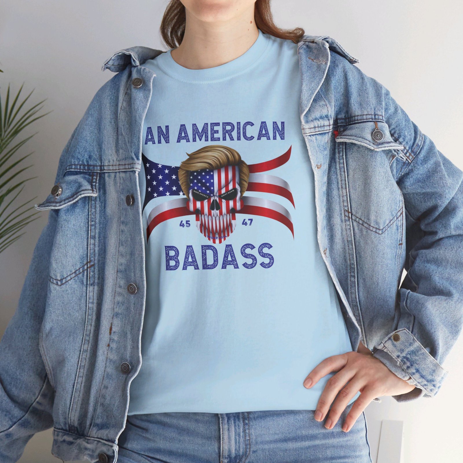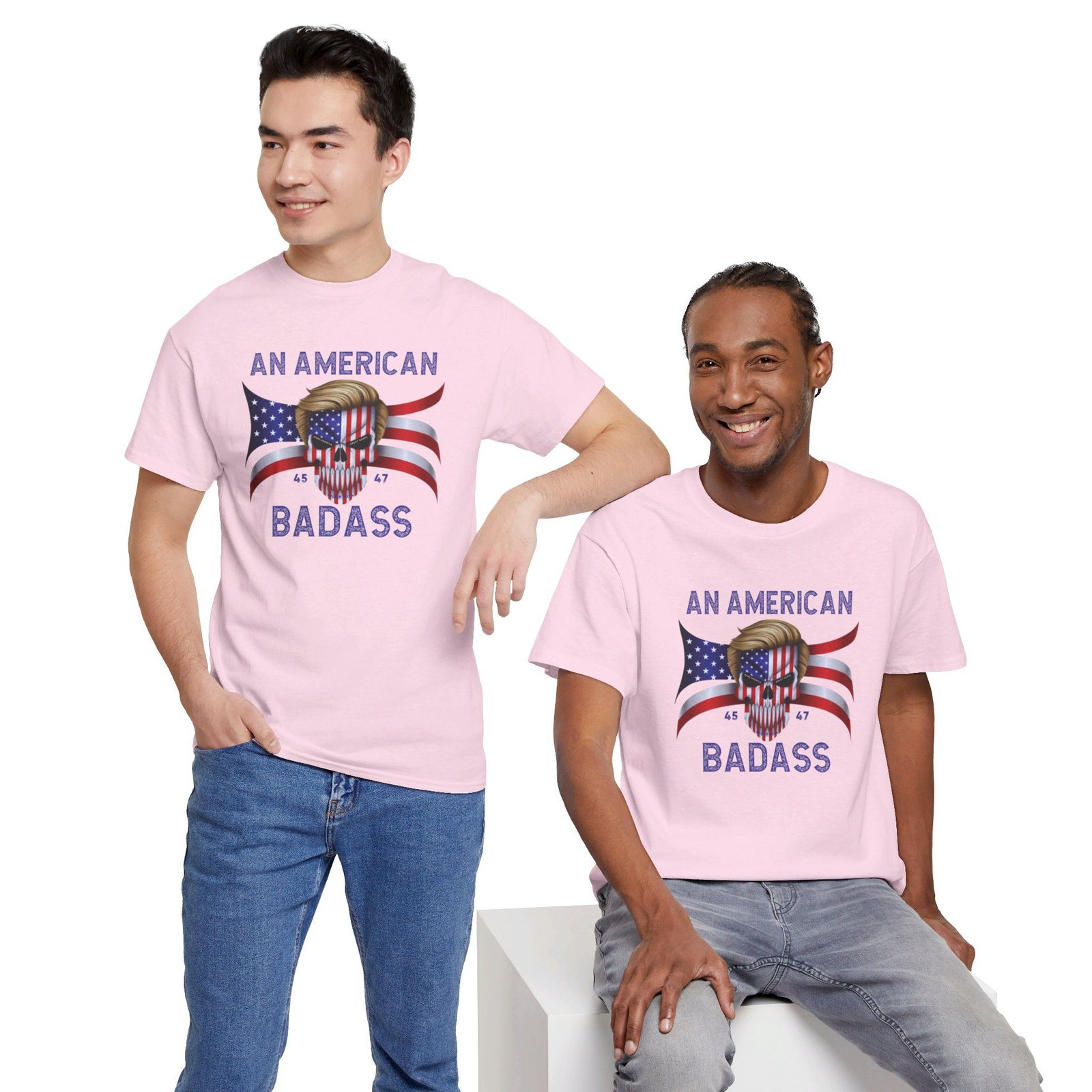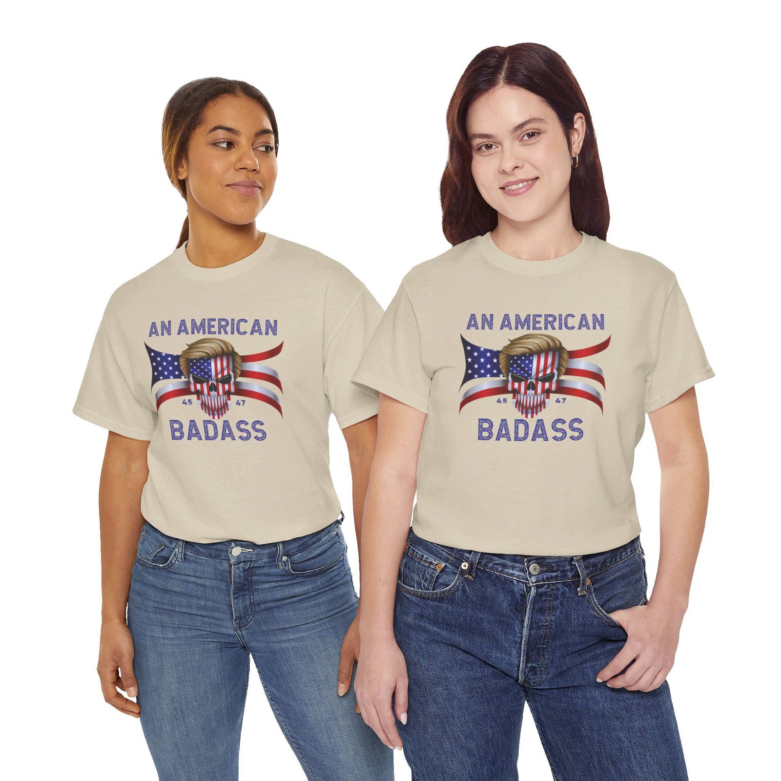 Trump – An American Badass – Make America Great Again MAGA – White – Unisex Heavy Cotton Tee