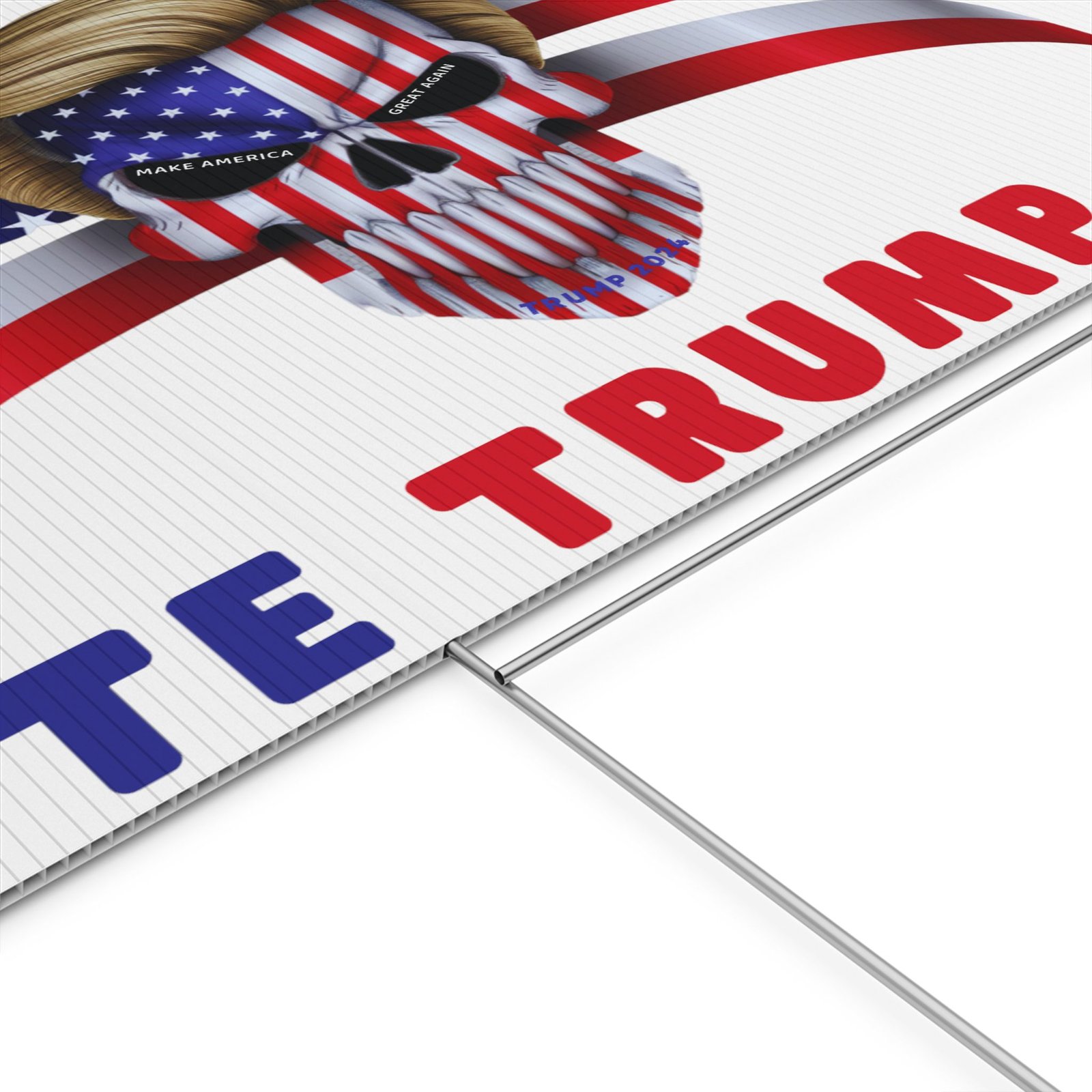 Vote Trump 2024 – American Badass – Skull Embedded USA Flag – Plastic Yard Sign.